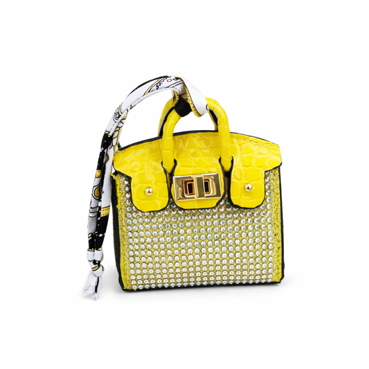 Faux leather with rhinestones and matching printed handle scarf birkin bag charm key chain