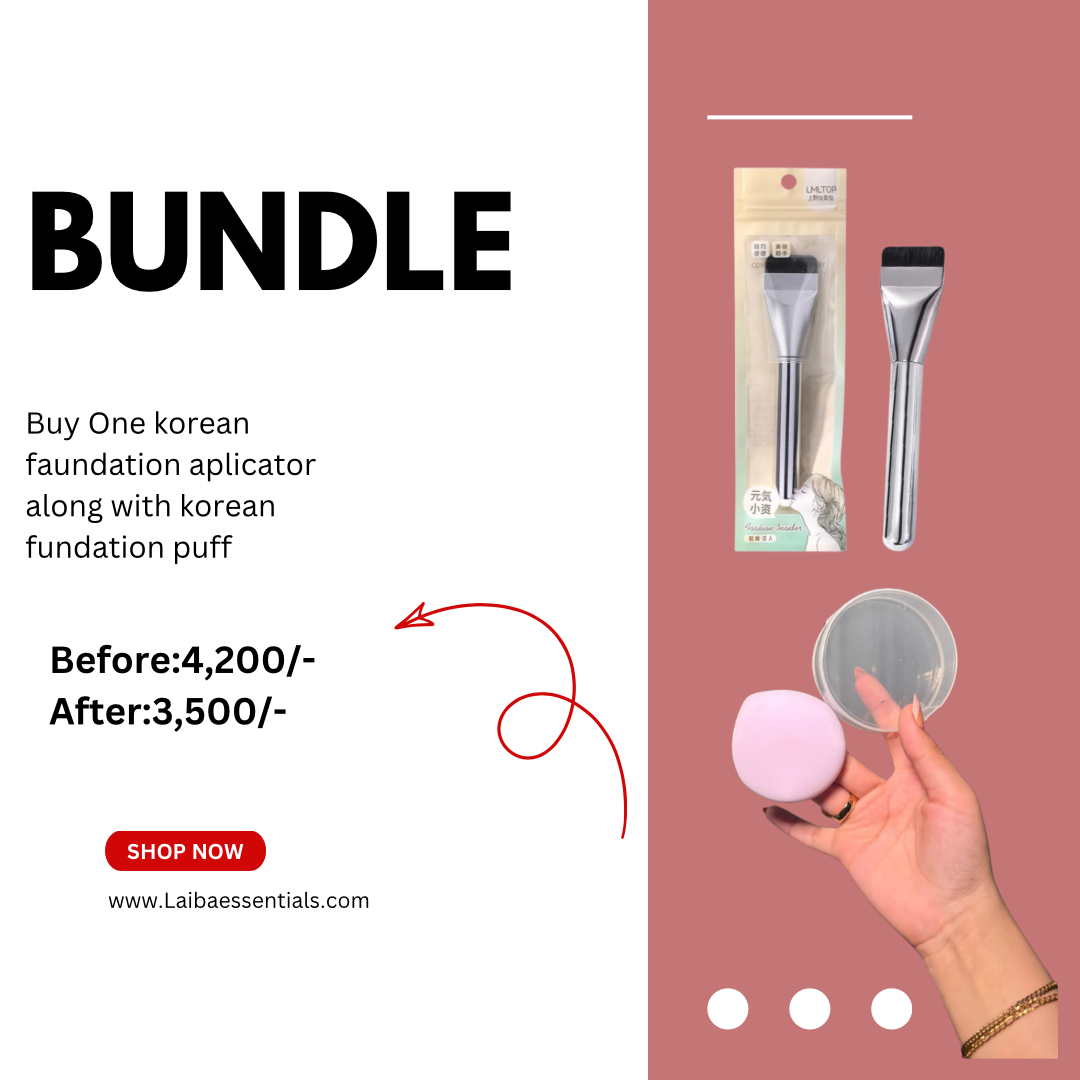 Buy one Korean foundation applicator along with a Korean foundation puff for just 3,500/- (originally 4,200/-). The product color will be random, adding a touch of surprise to your purchase! Enhance your makeup routine with these Korean beauty tools at a discounted price. Get that flawless look effortlessly with this fantastic deal!