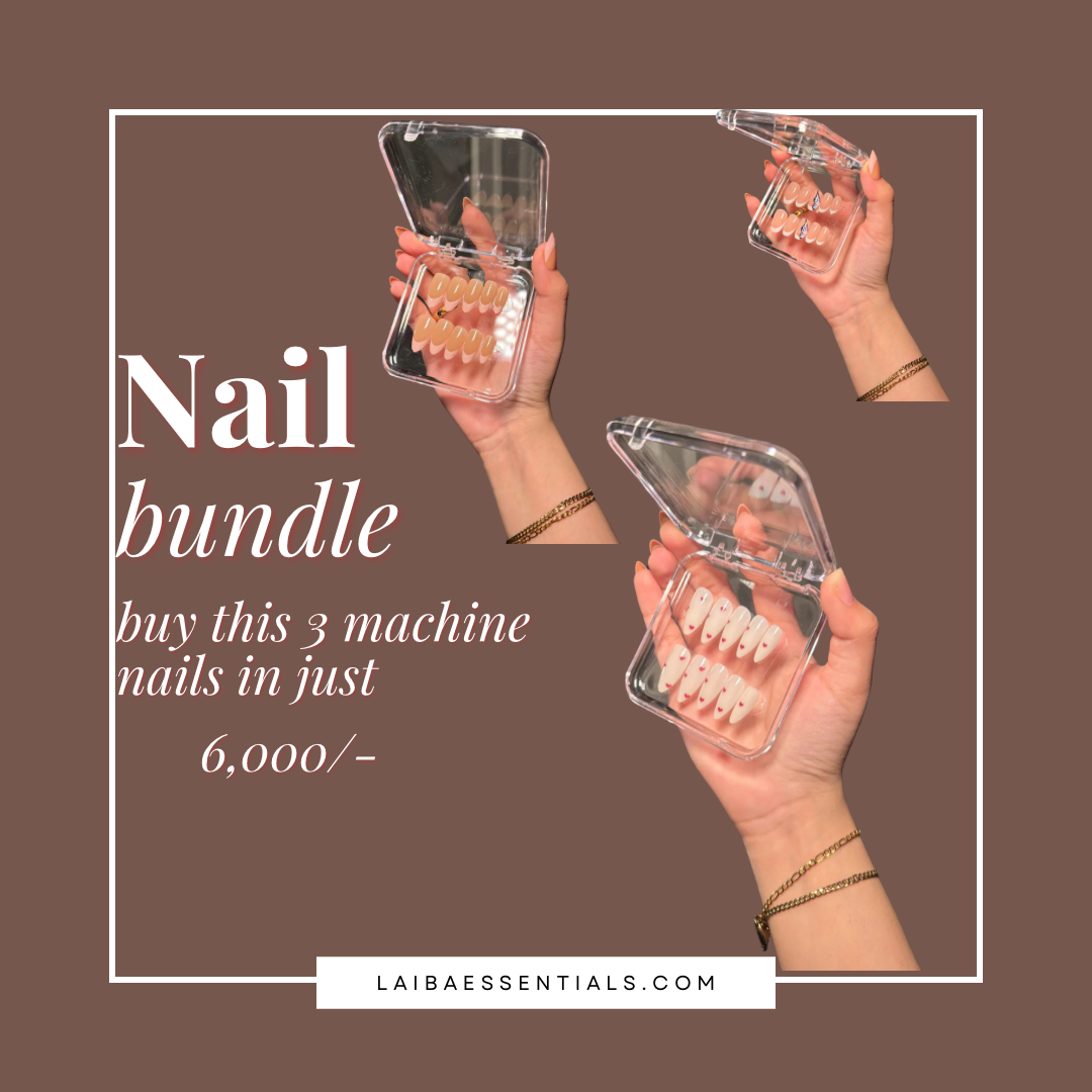 Get ready to buy this bundle of 3 machine nails! This bundle is perfect for anyone looking to elevate their nail game. The machine nails are designed for a flawless finish and durability, making them ideal for any occasion. With this bundle, you can mix and match styles to create your perfect look. Don't miss out on the chance to enhance your manicure collection with these stylish machine nails!