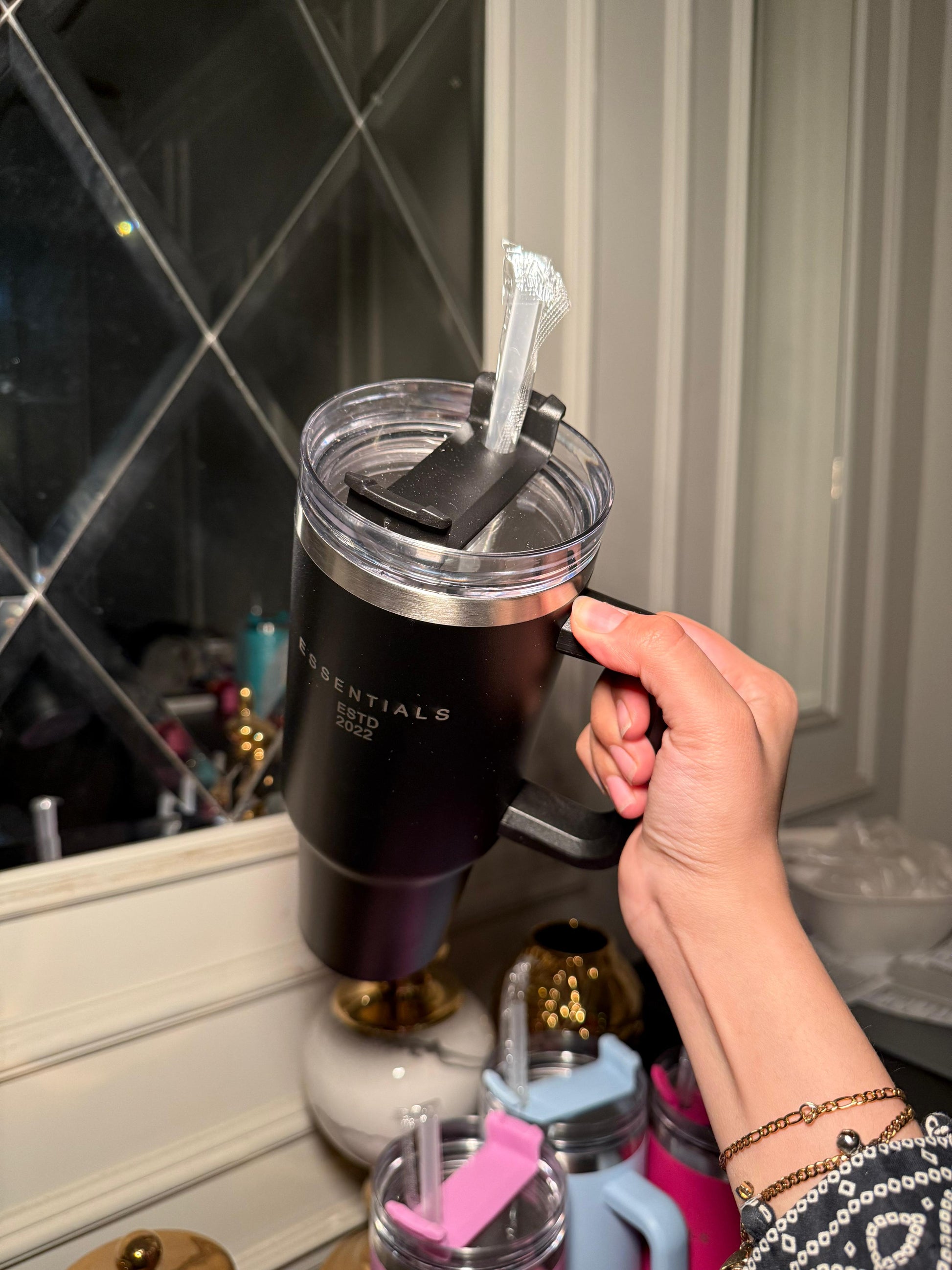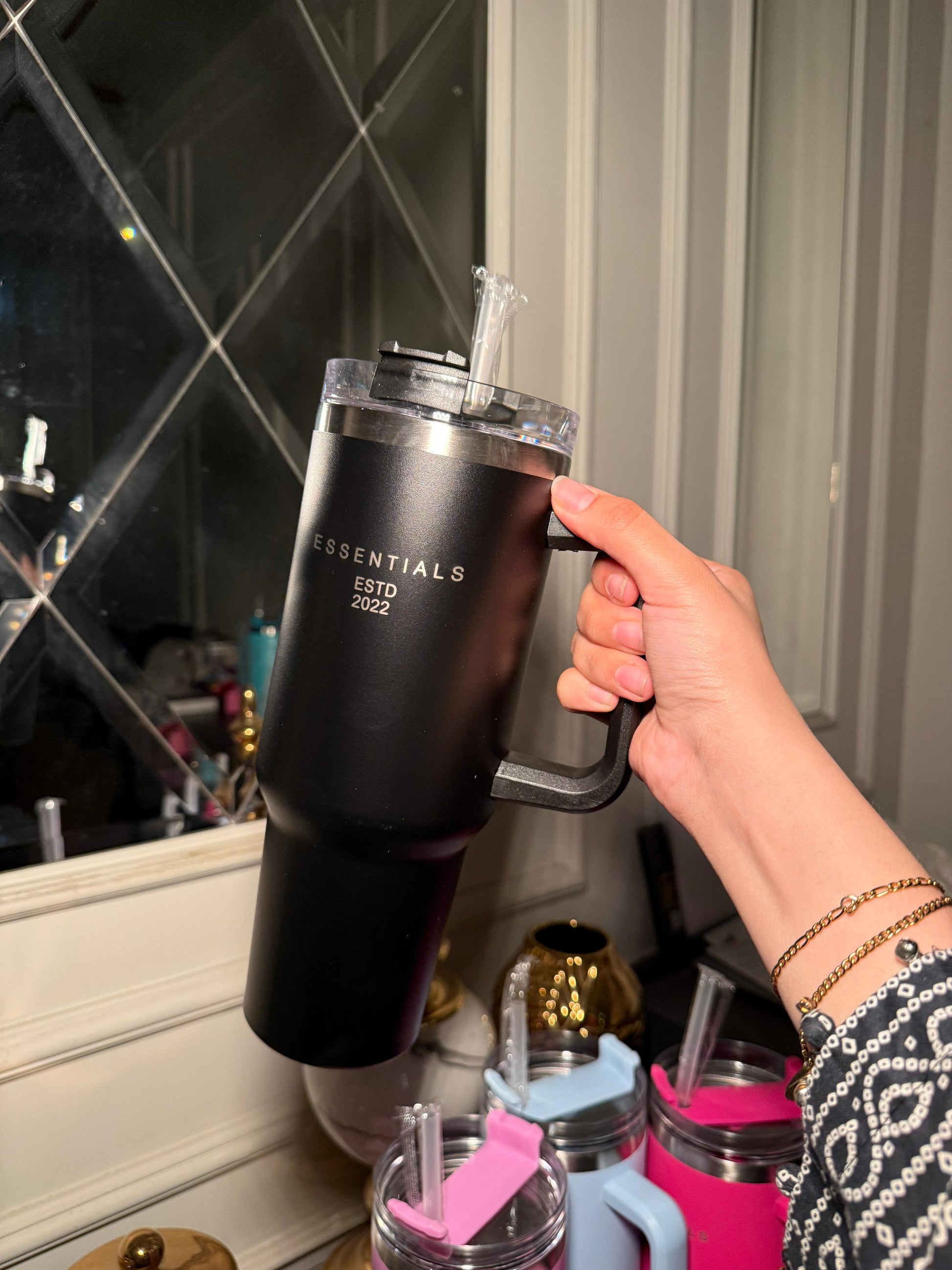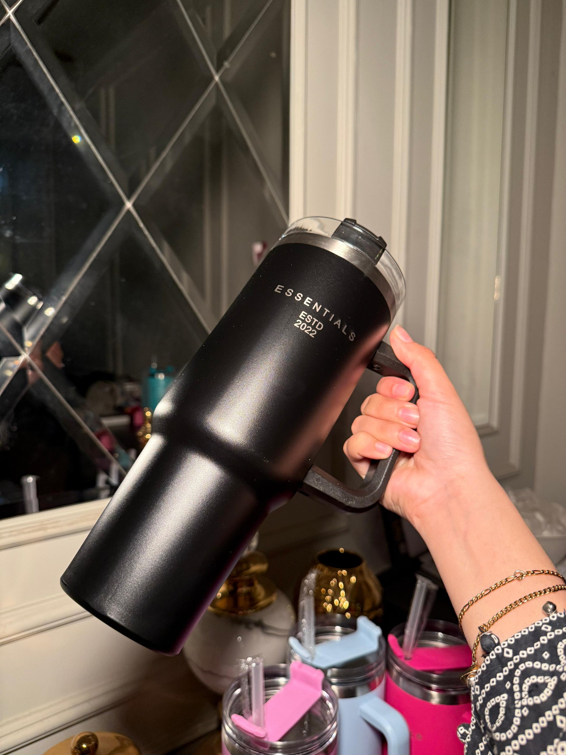 - A 40oz flask tumbler is like the ultimate drink buddy! This bad boy can hold a whopping 40 ounces of your favorite beverage, keeping it hot or cold for hours on end. Whether you're out camping, at a party, or just chilling at home, this flask tumbler has got your back. With its durable construction and sleek design, it's the perfect companion for staying hydrated or enjoying your drinks in style. So, grab your 40oz flask tumbler, fill it up, and sip away in convenience and flair!