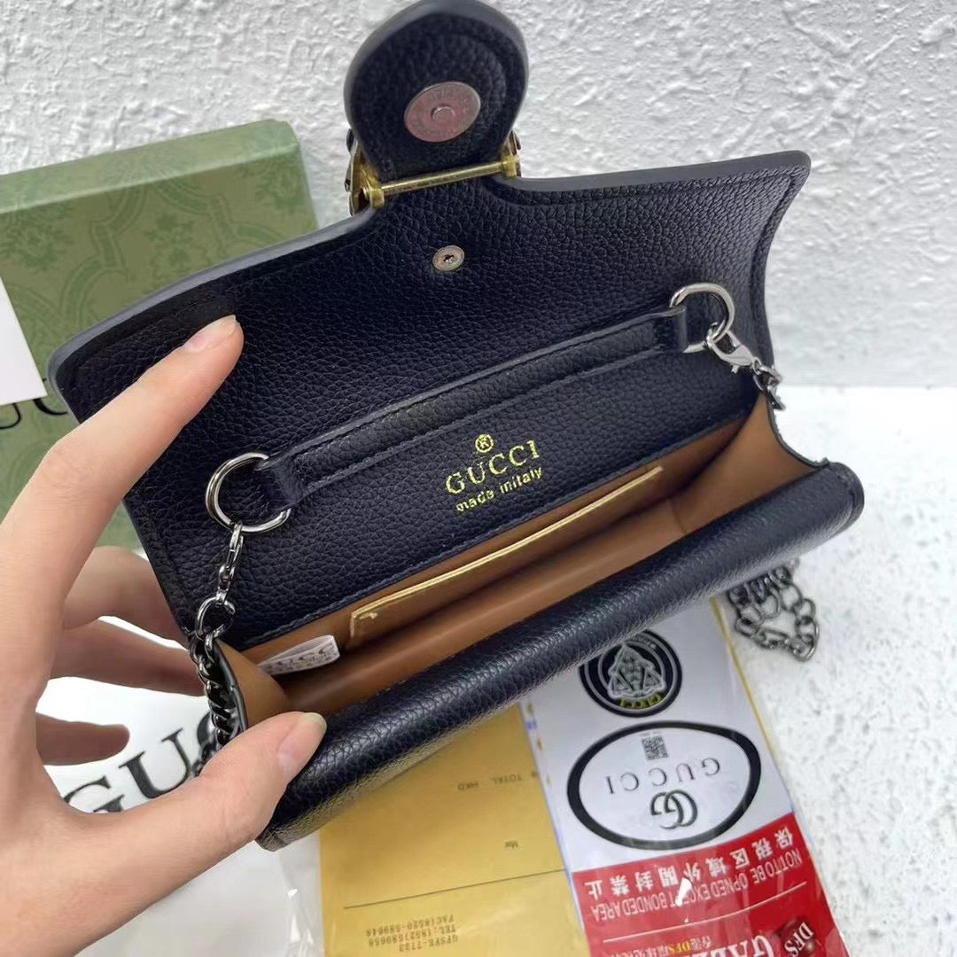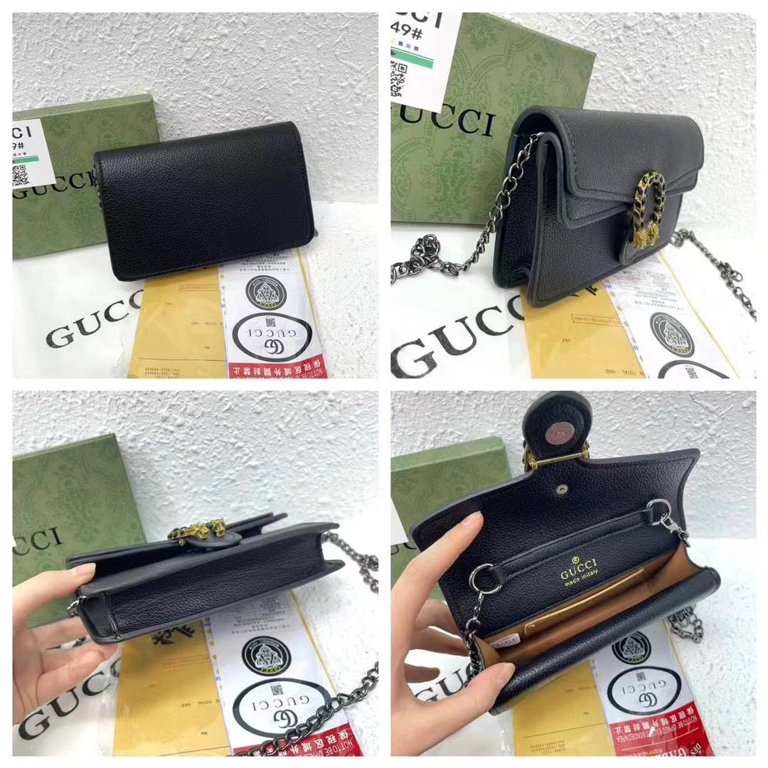 - The Gucci Miguel clutch is a stunning accessory that combines elegance and modernity. It's crafted with the finest materials, showcasing the iconic GG logo pattern on luxurious leather. The clutch features a sleek and compact design, perfect for carrying your essentials in style. It has a secure zip-top closure, keeping your belongings safe and secure. The interior is lined with soft fabric and includes pockets for easy organization. The clutch also comes with a detachable chain strap, allowing you to wear it as a shoulder bag or carry it as a clutch. The Gucci Miguel clutch is a true fashion statement, adding a touch of sophistication to any outfit. Get ready to turn heads and make a statement with this stunning Gucci accessory! 🌟👜✨