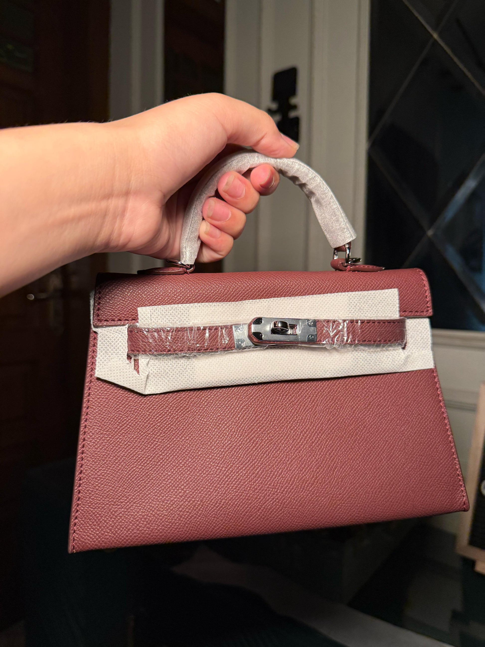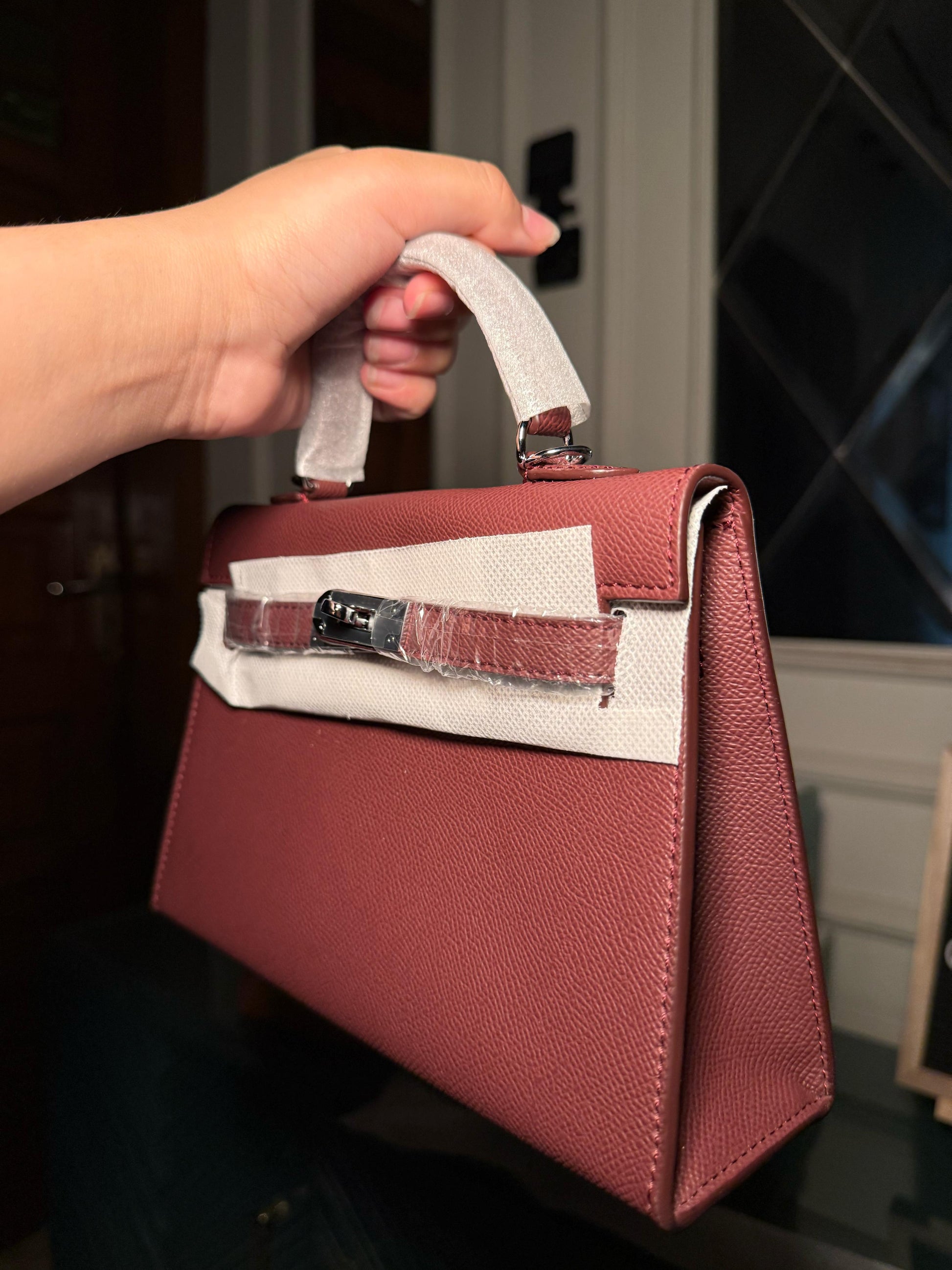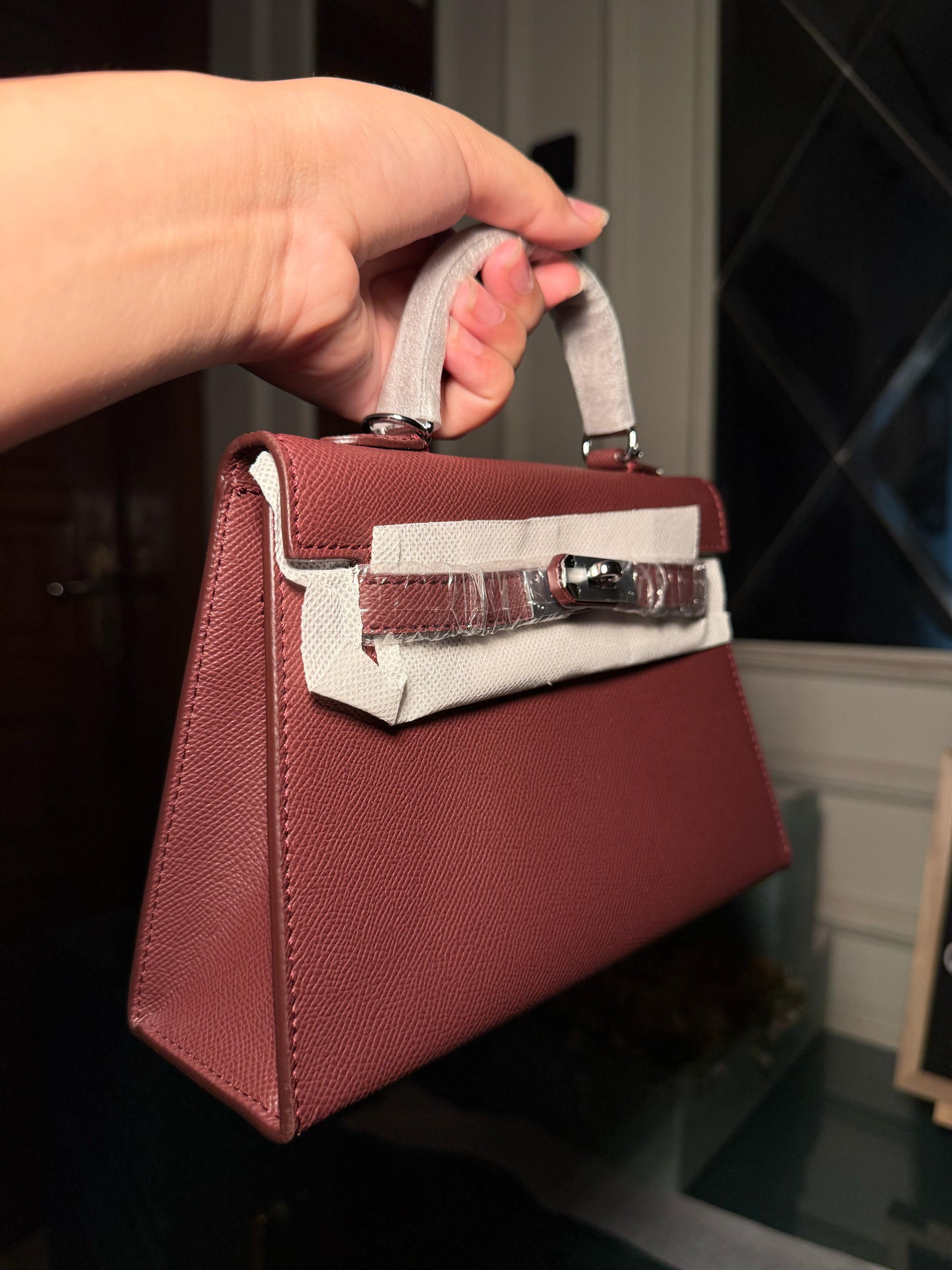 Burgundy mini Kelly bag 22 cm with silver lock (instock)