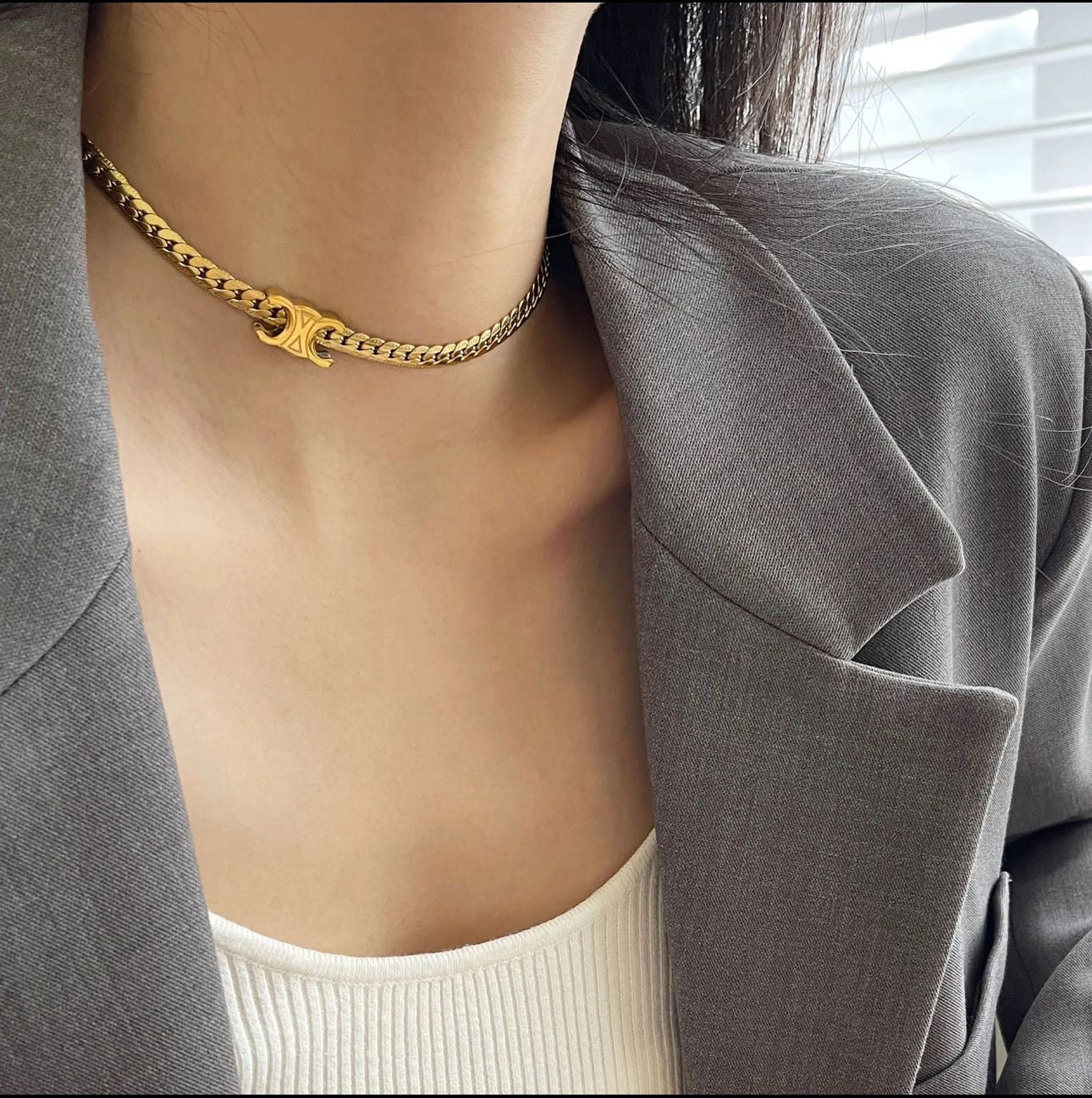 A Celine necklace is a luxurious and stylish accessory designed by the high-end fashion brand Celine. These necklaces often feature unique and chic designs that can elevate any outfit, adding a touch of elegance and luxury to your look.