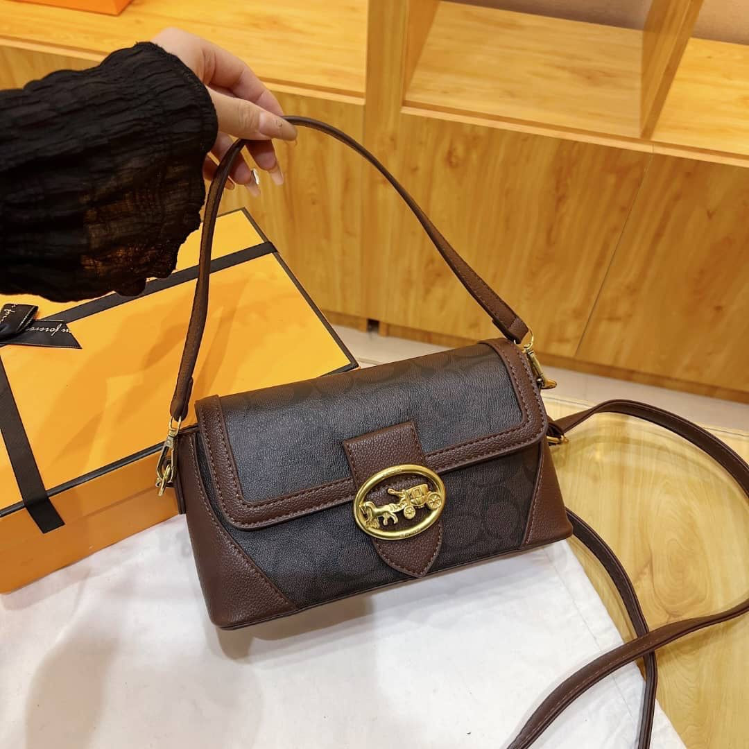 Chocolate brown coach printed shoulder bag (In Stock)