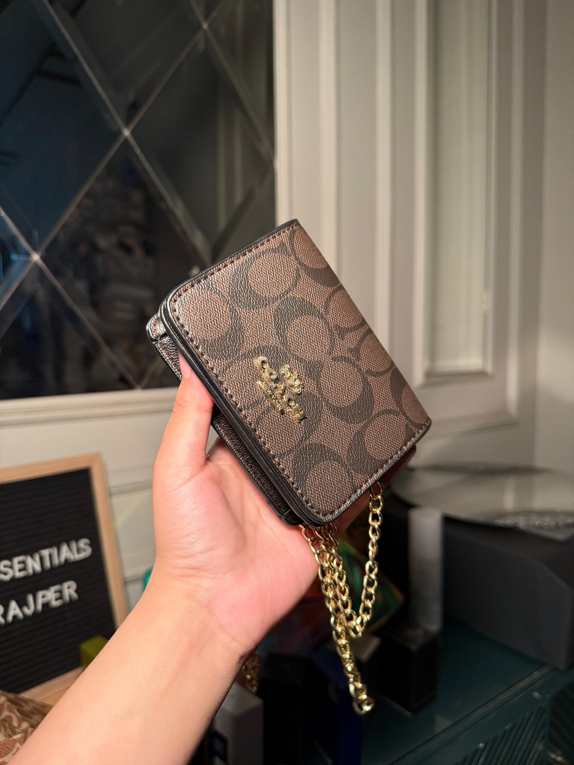 Coach Mini Crossbody in Dark Brown Signature Canvas Mini Chain Wallet (Gold Chain)(IMMEDIATE DELIVERY AVAILABLE)