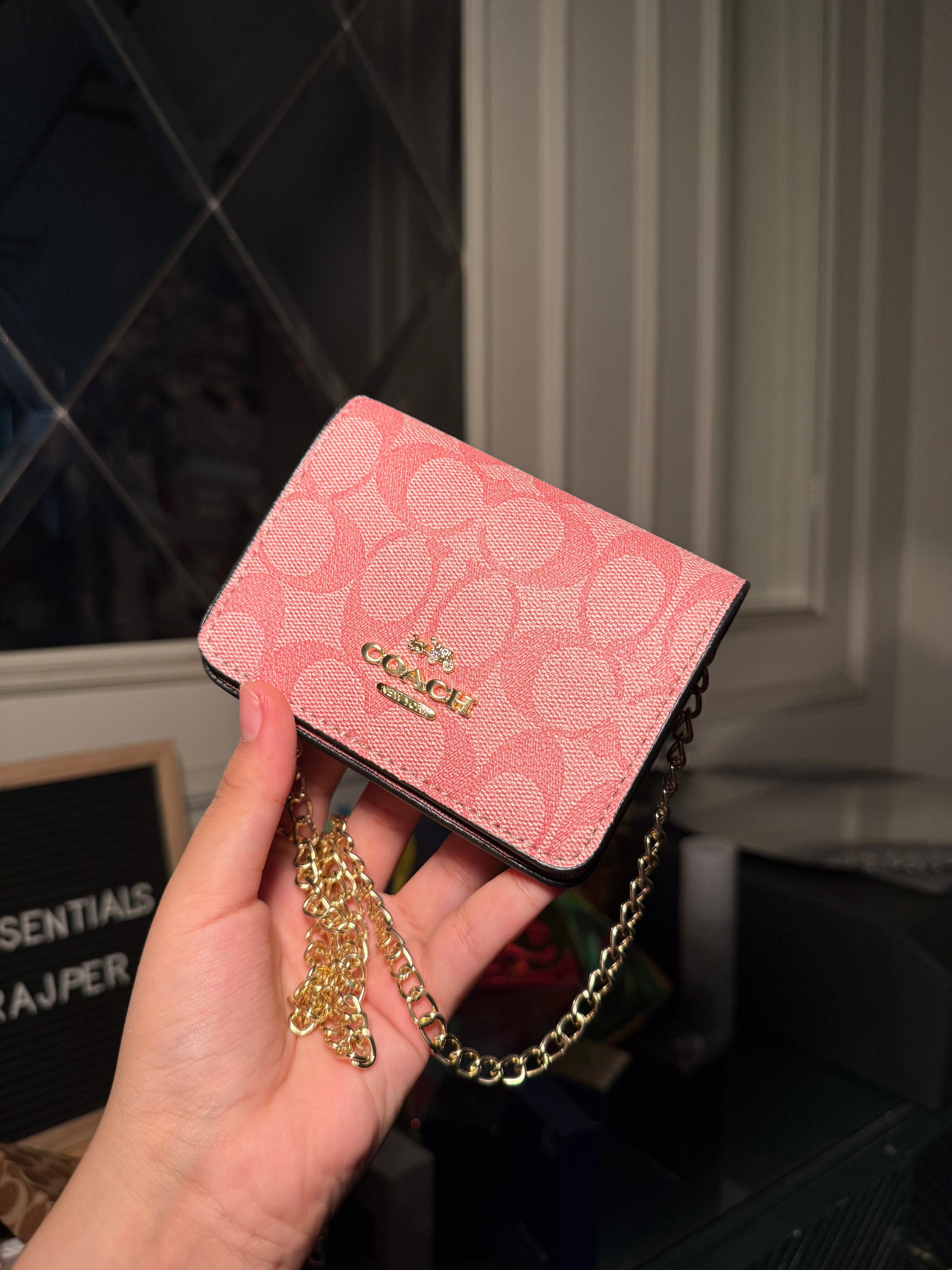 Coach Signature Canvas Mini Chain Wallet (Pink Chain) (IMMEDIATE DELIVERY AVAILABLE)