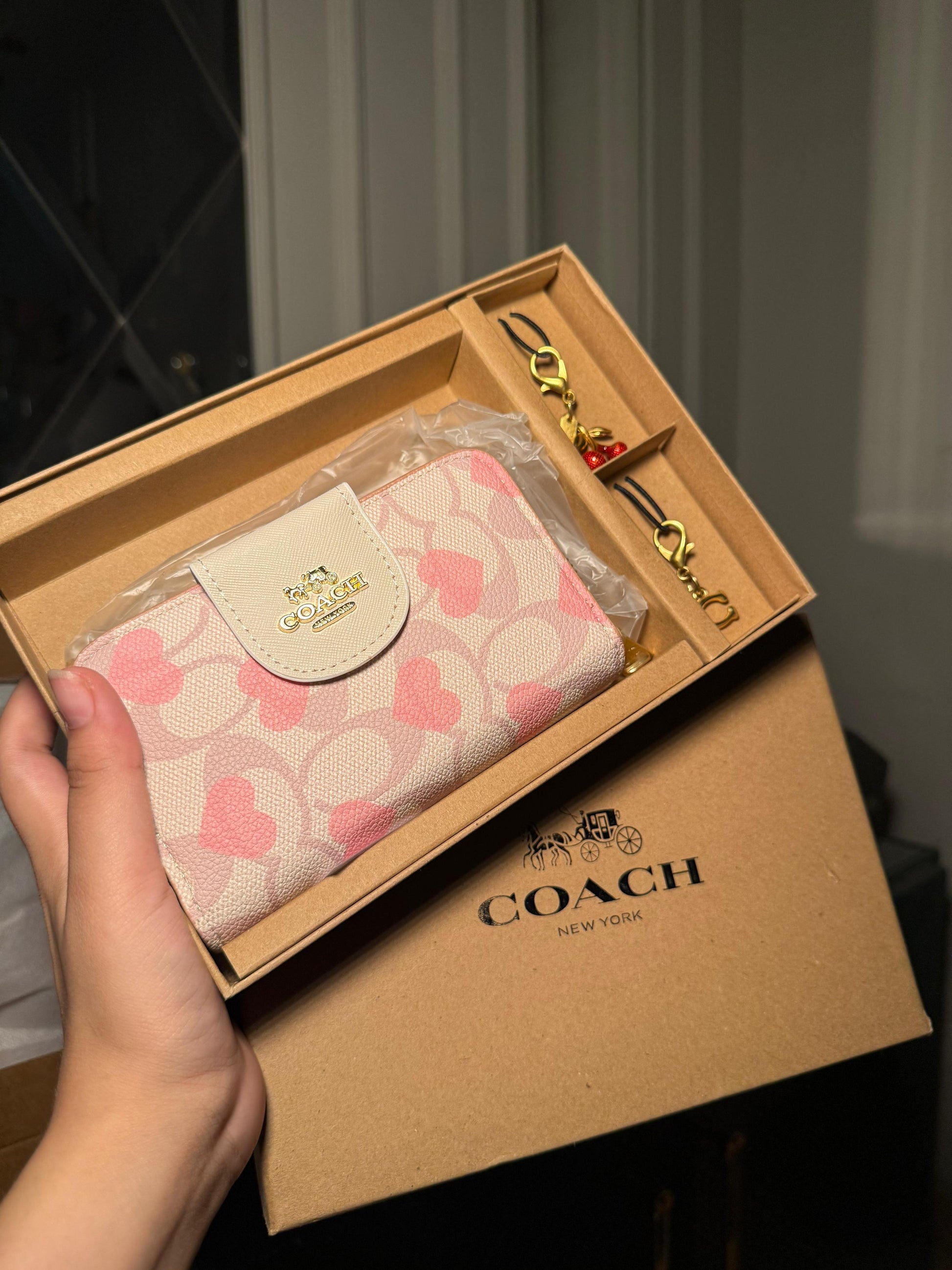 Add a touch of chic to your essentials with thisq adorable pink Coach wallet set! 😍