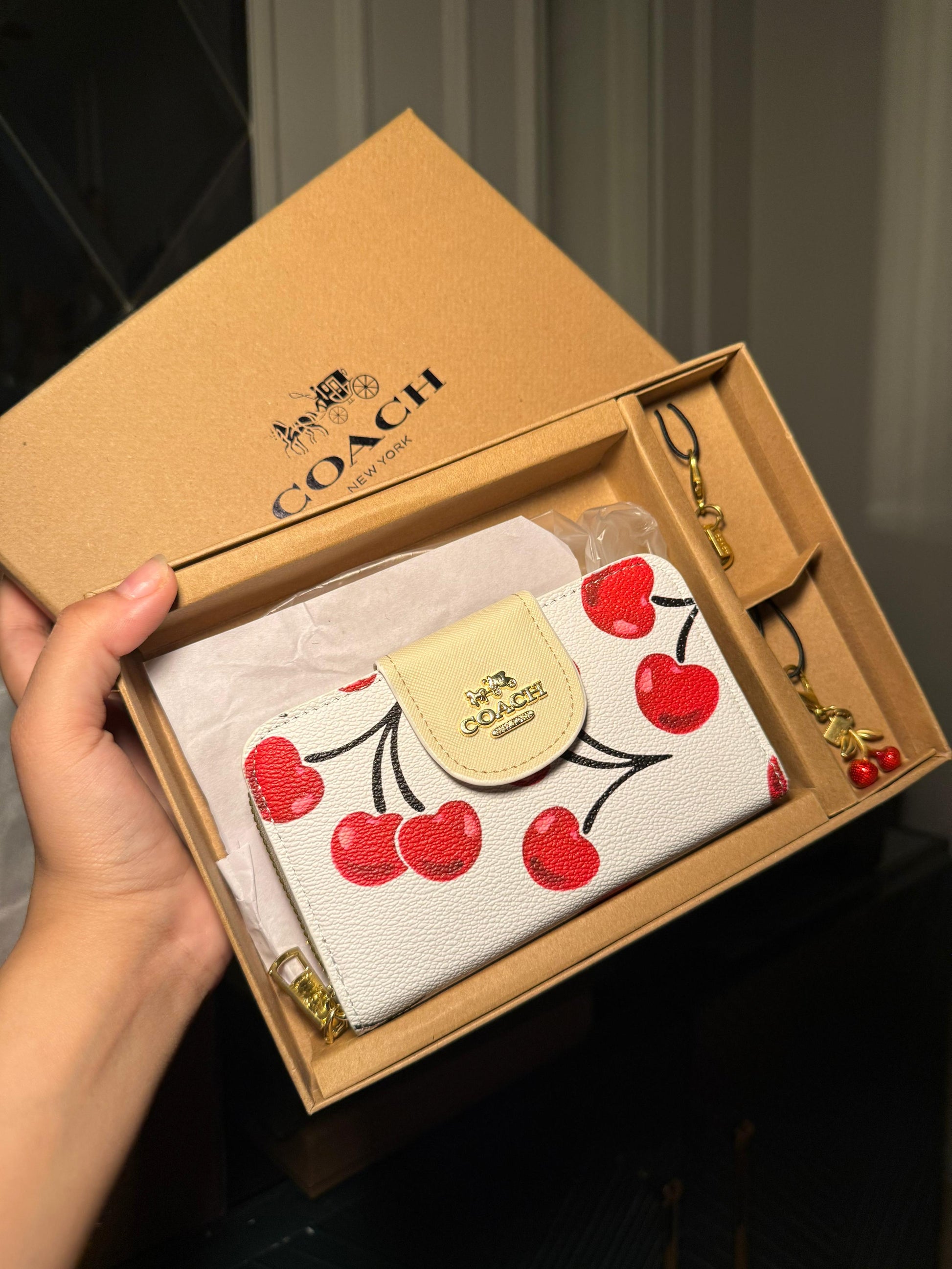 Coach Signature Canvas Wallet with Red Cherry Print 3pcs Set (IMMEDIATE DELIVERY AVAILABLE)