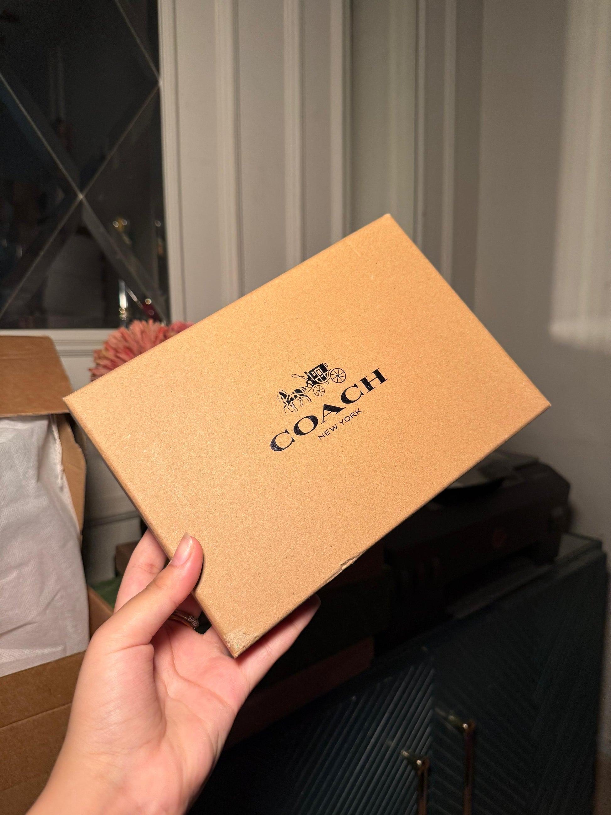 - *Wallet Details*: black Coach wallet with signature pattern and black leather flap featuring gold Coach logo 💫.
