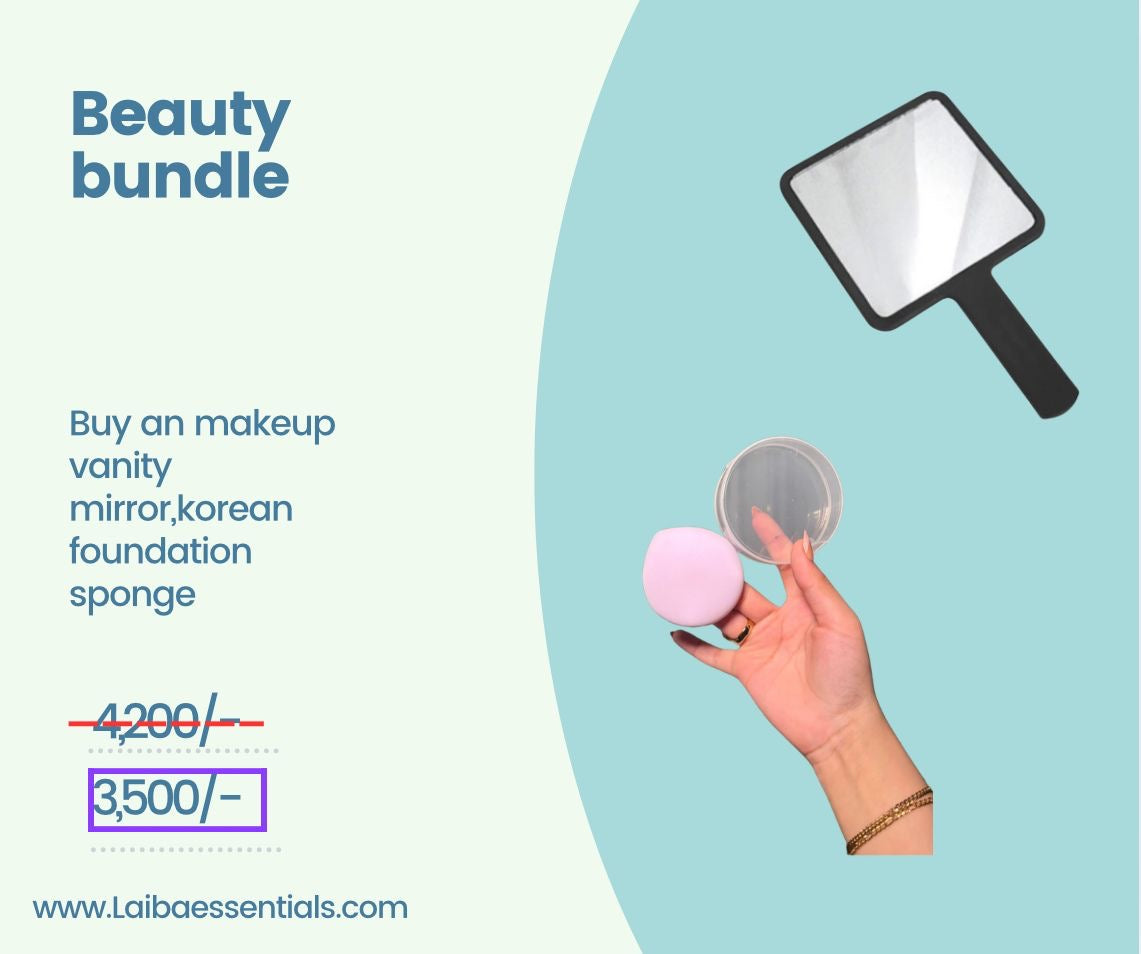 Buy a makeup vanity mirror and a Korean foundation sponge! This bundle is perfect for making your makeup application easy and flawless. The makeup vanity mirror provides a clear reflection, allowing you to apply your makeup accurately, whether it's day or night. The Korean foundation sponge helps blend your foundation evenly, giving your skin a smooth and natural finish. Upgrade your beauty routine and perfect every look! Enjoy shopping!