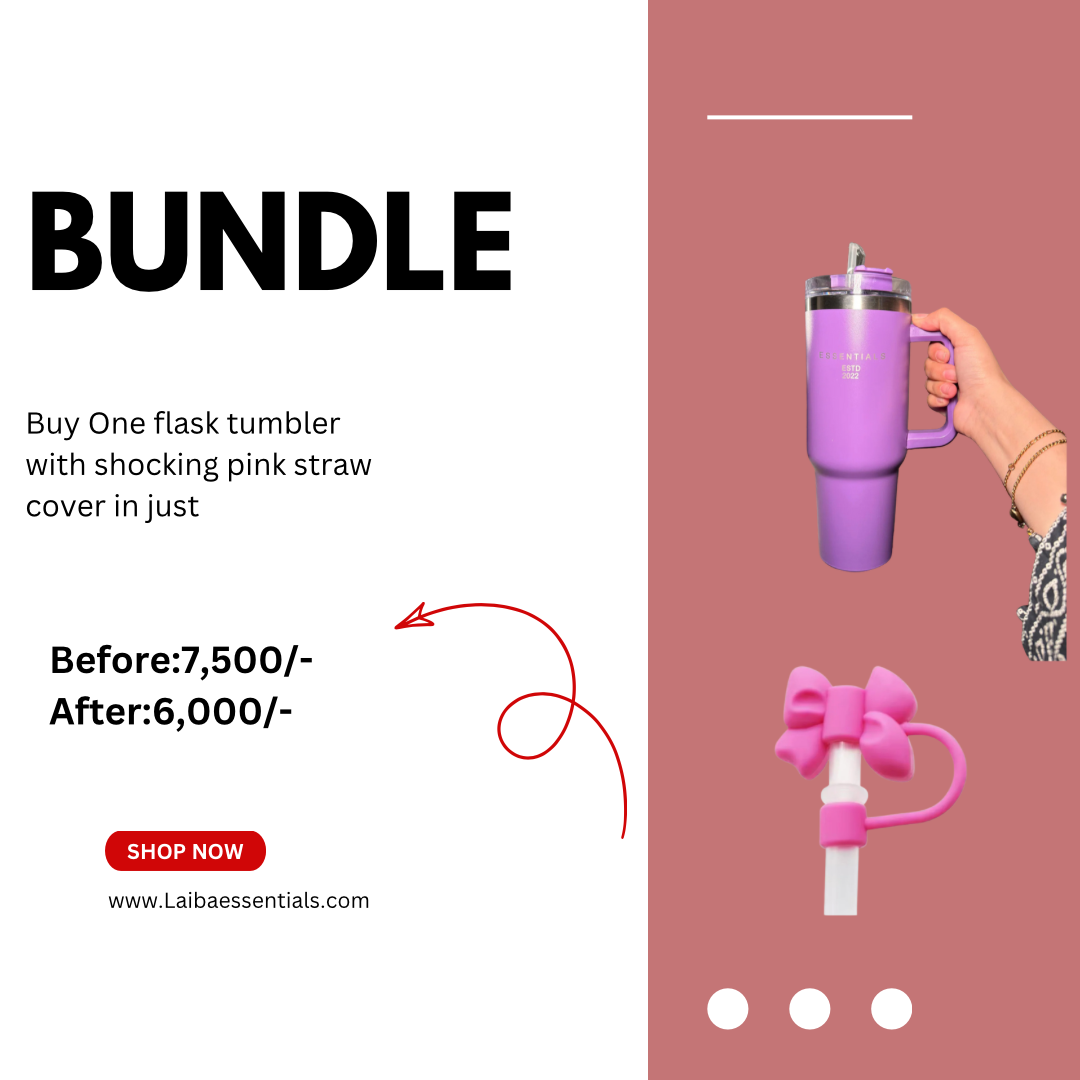 Buy one flask tumbler with a shocking pink straw cover for just 6,000/- (originally 7,500/-). This stylish tumbler is perfect for keeping your beverages hot or cold, and the eye-catching shocking pink straw cover adds a fun touch. Please note that the color of the straw will be random, making each purchase unique! Grab this great deal and enjoy your drinks in style!