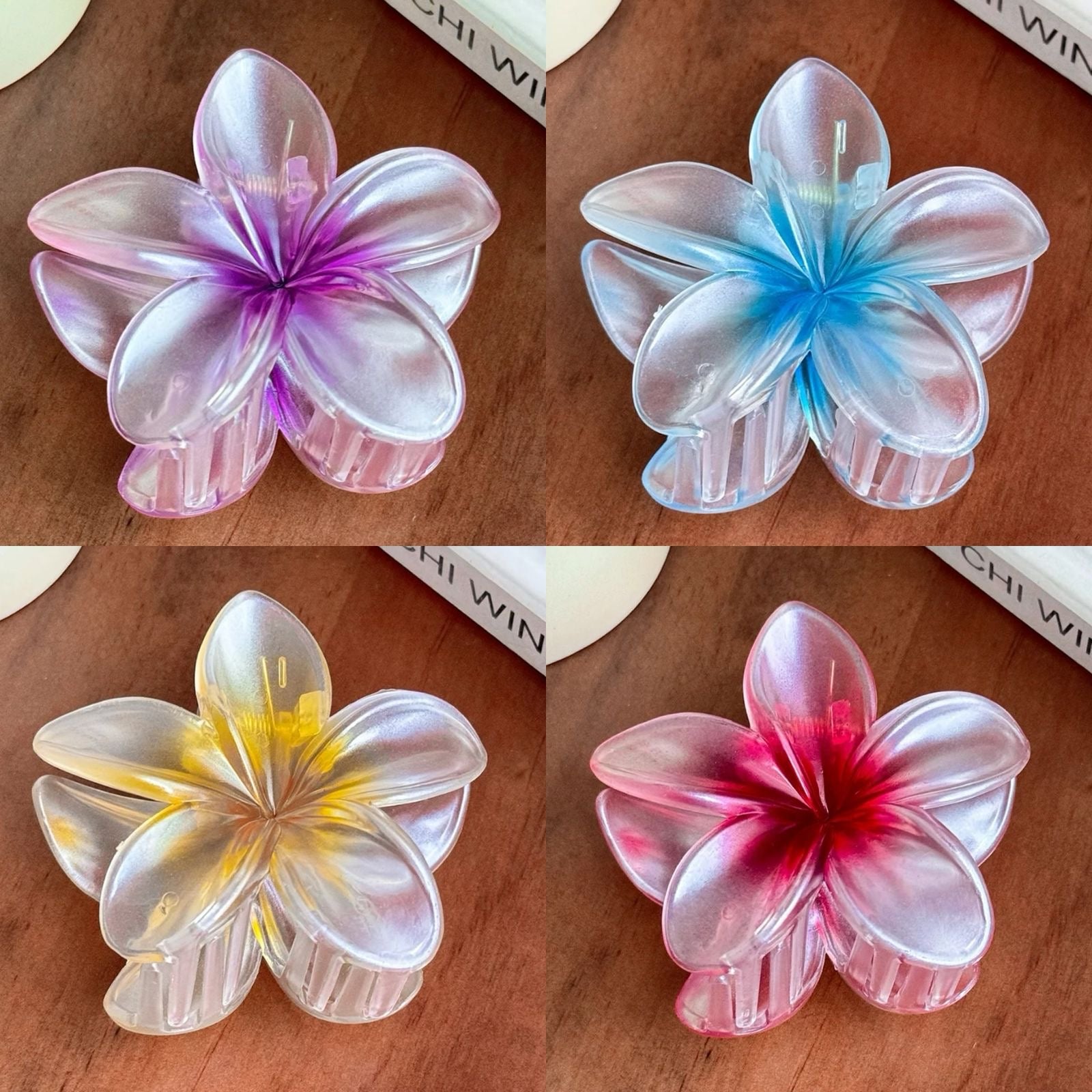 Introducing Flower transparent hair claw pack of 4 On @labia essentials A pack of 4 flower transparent hair claws typically includes four hair claws designed with a transparent material and adorned with flower details. These hair claws are used for styling and securing hair in place. The transparent design gives them a subtle and elegant look, while the flower decorations add a touch of charm to your hairstyle. These hair claws are versatile and can be used for various hair lengths and types. They provide a secure hold to keep your hair neatly styled throughout the day.