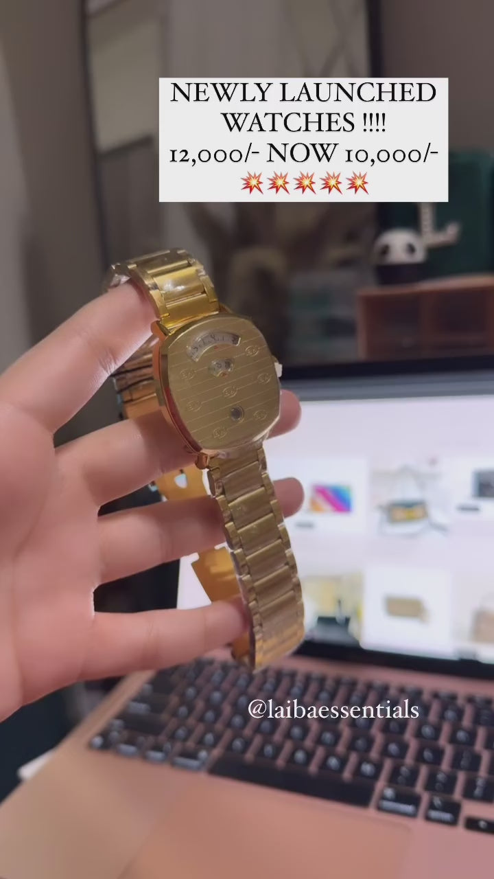 - This exquisite watch combines timeless elegance with a touch of luxury. With its gleaming gold dial and bracelet, it's a statement piece that exudes sophistication and style. Whether you're attending a glamorous event or simply want to elevate your everyday look, this watch will always make you shine. It's time to embrace the golden moments in life with this stunning timepiece on your wrist!" ⌚✨