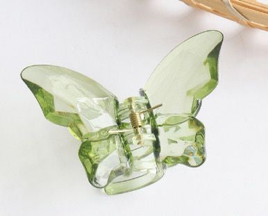 The green small butterfly claw is a lovely hair accessory that features a small green butterfly design on a claw clip. It adds a touch of nature-inspired beauty to your hairstyle, bringing a whimsical and charming element to your look.