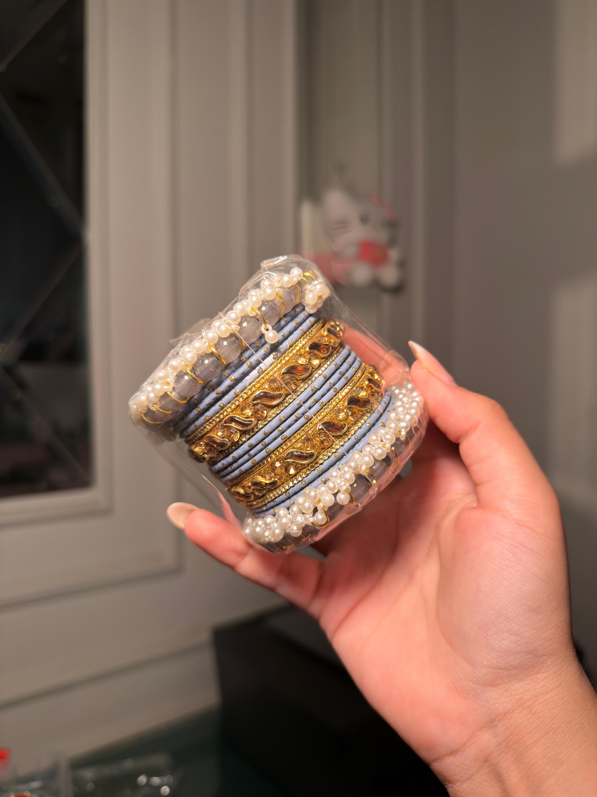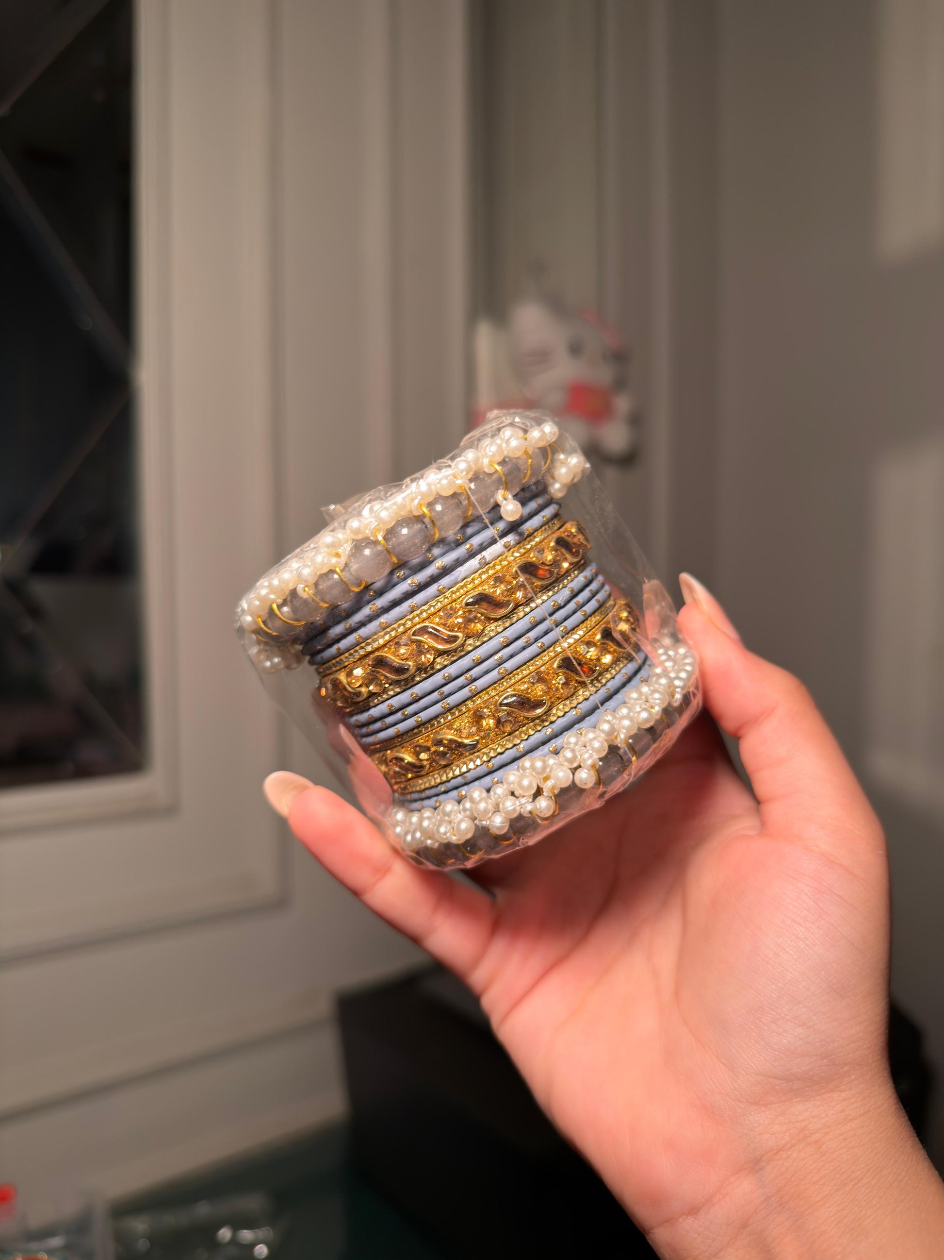 Dul Light Blue Pearl Bangle Set