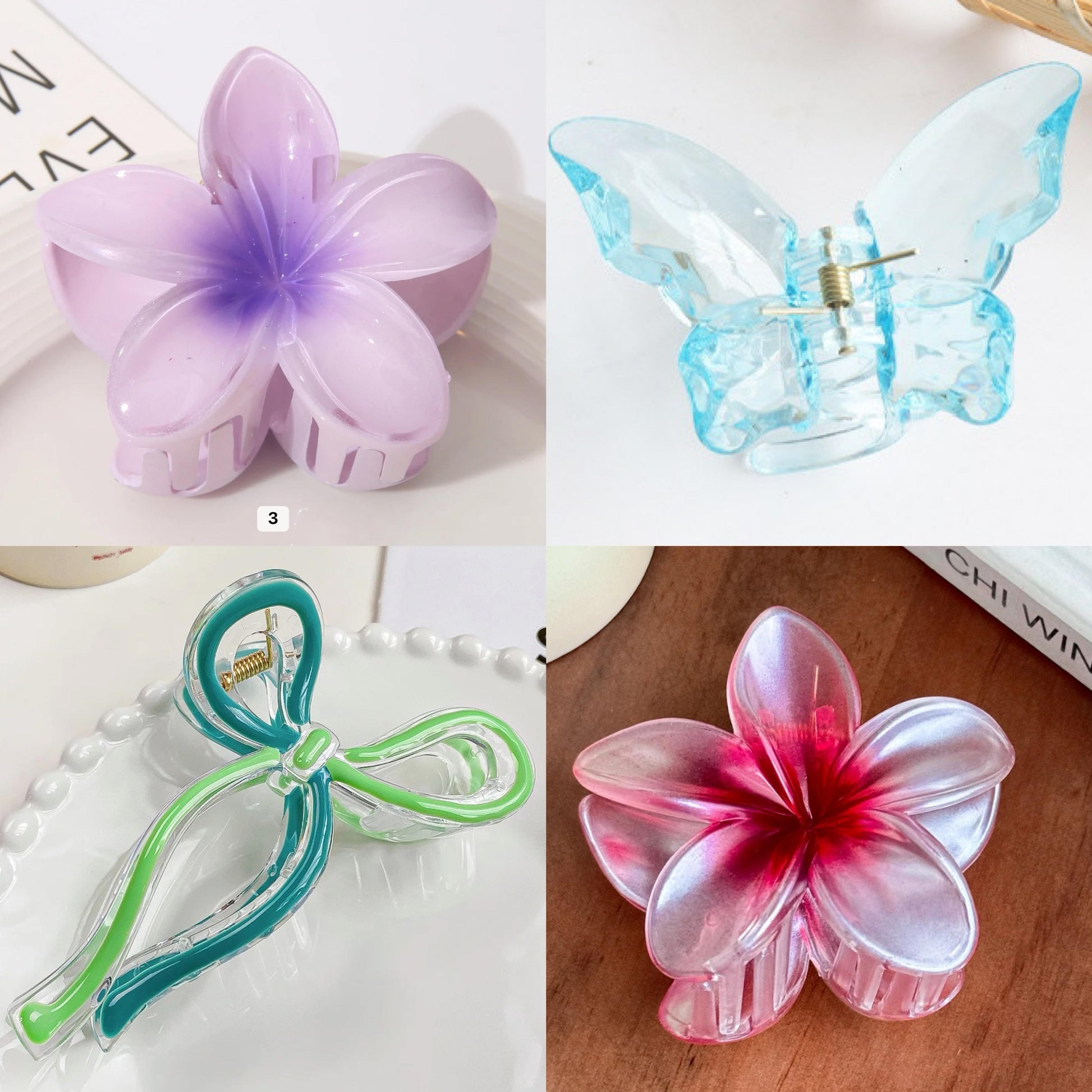 Introducing hair claw bundleOn @Laibaessentials "Get ready to elevate your hair game with this fabulous Hair Claw Bundle! It includes a charming Flower Claw, a stylish Bow Claw, and a delicate Butterfly Claw. These trendy hair accessories are perfect for adding a touch of elegance and flair to your everyday look. Whether you're going for a cute and playful vibe or a more sophisticated style, this bundle has you covered. Say goodbye to boring hair days and hello to effortless chic with these versatile hair claws!"