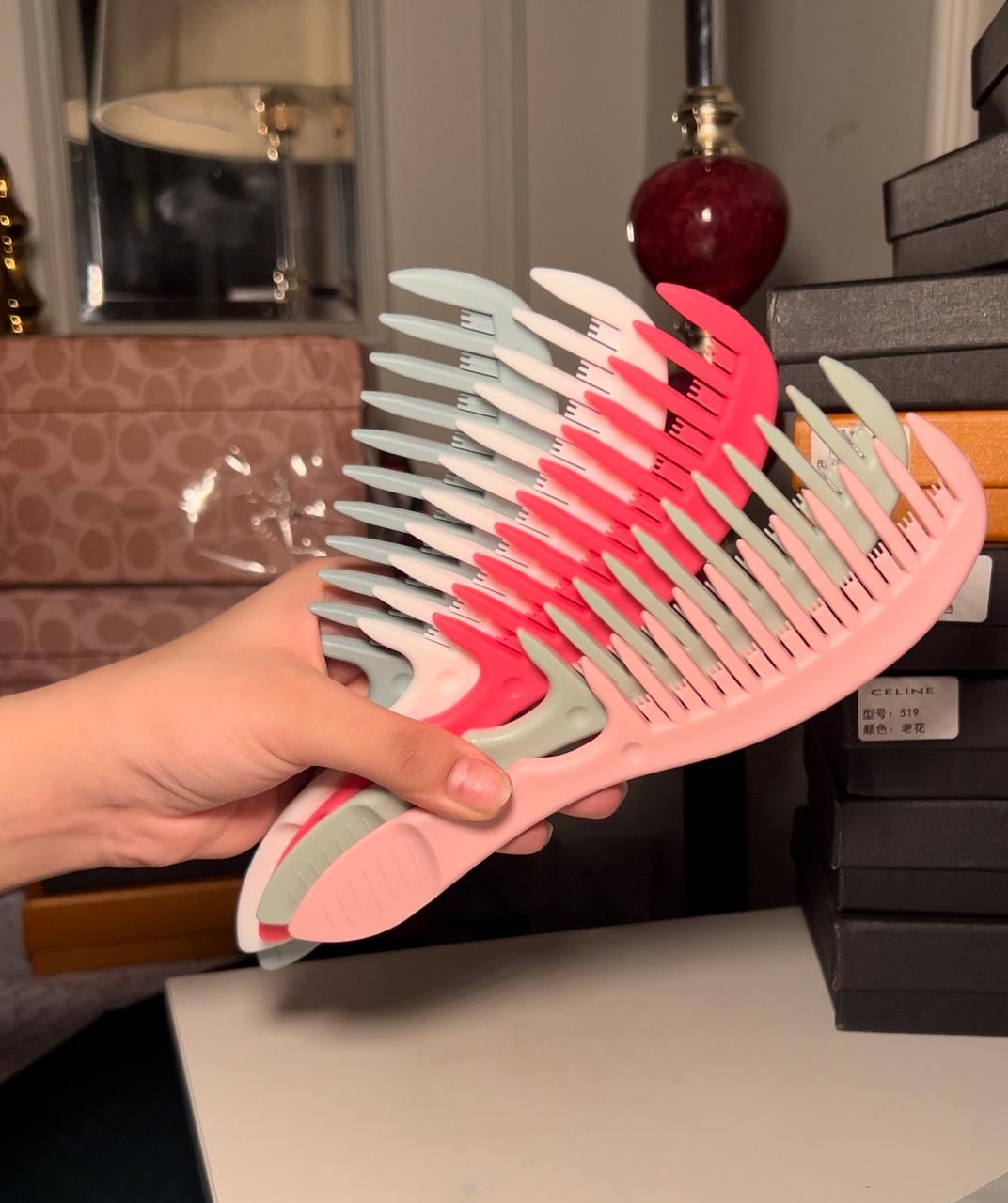 - this awesome styling comb that's gonna level up your hair game. This little gem is perfect for taming those locks and creating sleek, stylish hairstyles. With its fine teeth and ergonomic design, it effortlessly glides through your hair, detangling and smoothing as it goes. Whether you're rocking a chic updo, a sassy ponytail, or just want to add some extra polish to your everyday look, this styling comb is here to save the day. It's like having a personal hairstylist in the palm of your hand. So go ahead, get your hair game on point with this must-have styling comb.