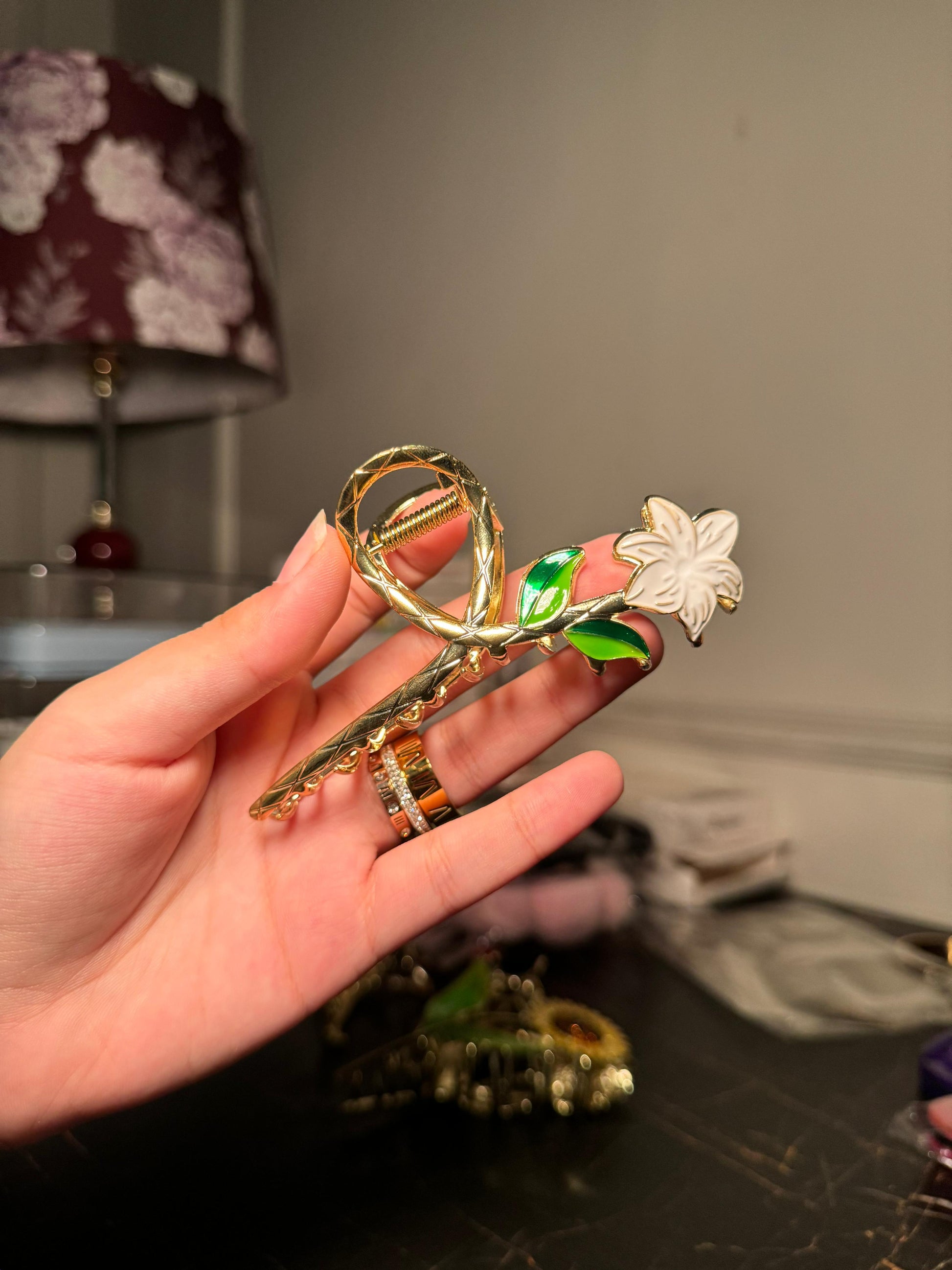 - this golden hair claw is a chic and elegant accessory for your hair. It adds a touch of glamour and sophistication to your hairstyle. The golden color gives it a luxurious look, making it perfect for special occasions or adding a bit of glam to your everyday outfits. The claw design ensures a secure grip, keeping your hair in place with style. It's a versatile accessory that can elevate any look with its beautiful and classy appearance. Perfect for adding a touch of shine to your hair!