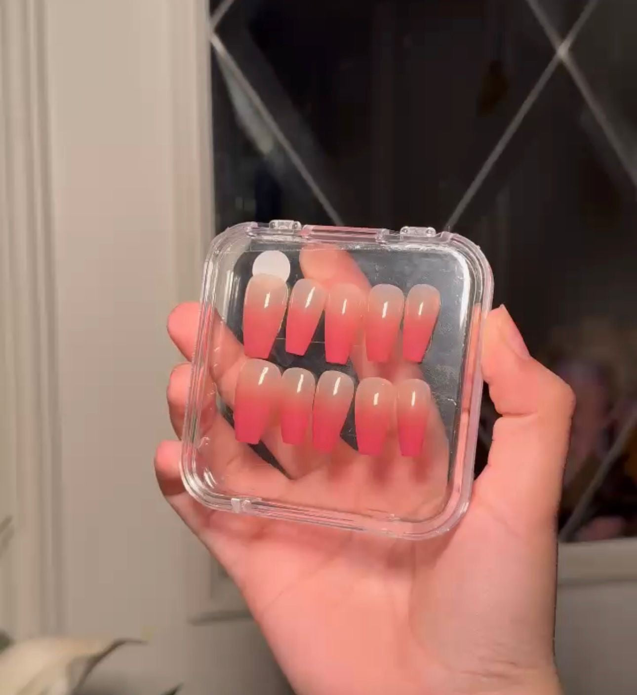 - our stunning collection of handmade press-on nails! Each set is meticulously crafted with love and attention to detail, ensuring a perfect fit and an eye-catching design. Our nails are made from high-quality materials, providing durability and a comfortable wear that lasts. Whether you're looking for a chic, elegant look or something bold and vibrant, we have a variety of styles to suit every occasion. Easy to apply and remove, our press-on nails are perfect for anyone who wants to elevate their nail game without the commitment of a salon visit. Get ready to express your unique style and make a statement with our fabulous press-on nails!