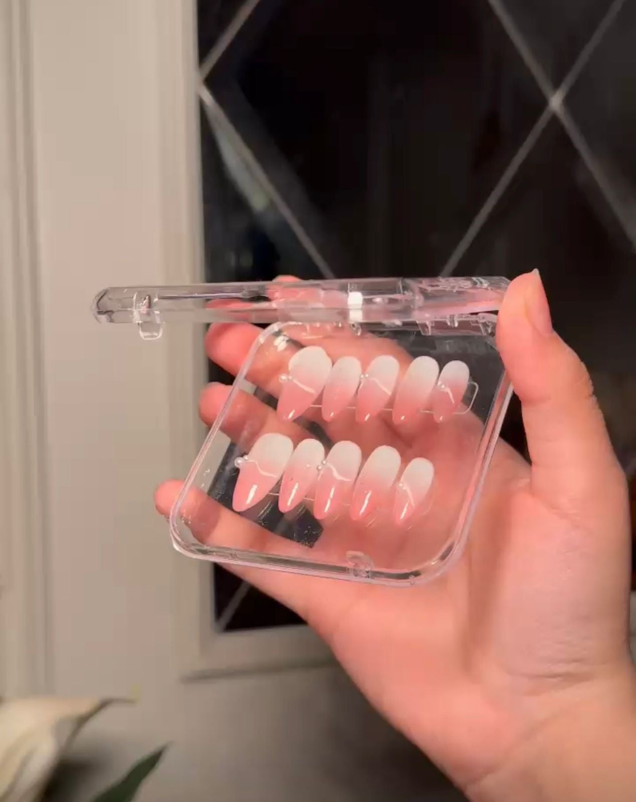 - our stunning collection of handmade press-on nails! Each set is meticulously crafted with love and attention to detail, ensuring a perfect fit and an eye-catching design. Our nails are made from high-quality materials, providing durability and a comfortable wear that lasts. Whether you're looking for a chic, elegant look or something bold and vibrant, we have a variety of styles to suit every occasion. Easy to apply and remove, our press-on nails are perfect for anyone who wants to elevate their nail game without the commitment of a salon visit. Get ready to express your unique style and make a statement with our fabulous press-on nails!