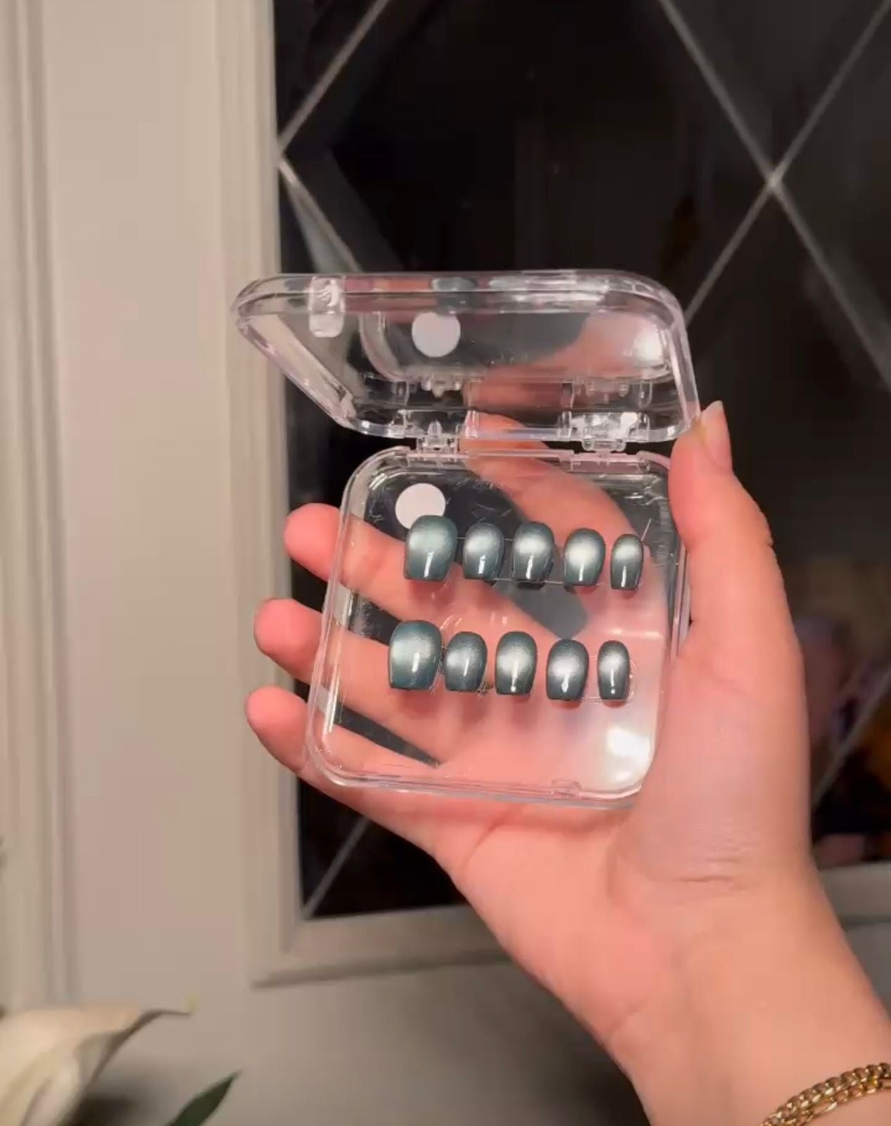 - our stunning collection of handmade press-on nails! Each set is meticulously crafted with love and attention to detail, ensuring a perfect fit and an eye-catching design. Our nails are made from high-quality materials, providing durability and a comfortable wear that lasts. Whether you're looking for a chic, elegant look or something bold and vibrant, we have a variety of styles to suit every occasion. Easy to apply and remove, our press-on nails are perfect for anyone who wants to elevate their nail game without the commitment of a salon visit. Get ready to express your unique style and make a statement with our fabulous press-on nails!