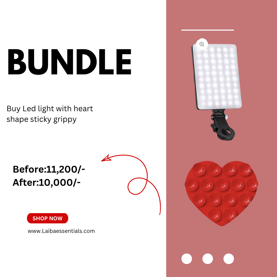 LED light and heart-shaped single side sticky grippy! In this bundle, you'll get a stylish LED light that will brighten up your space, along with a heart-shaped sticky grippy, which will come in a random color. This sticky grippy will help keep your essentials in place. Don't miss out on this fantastic offer!