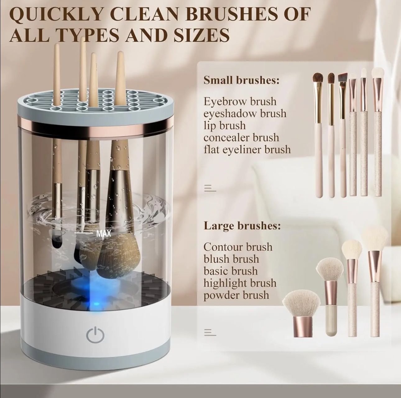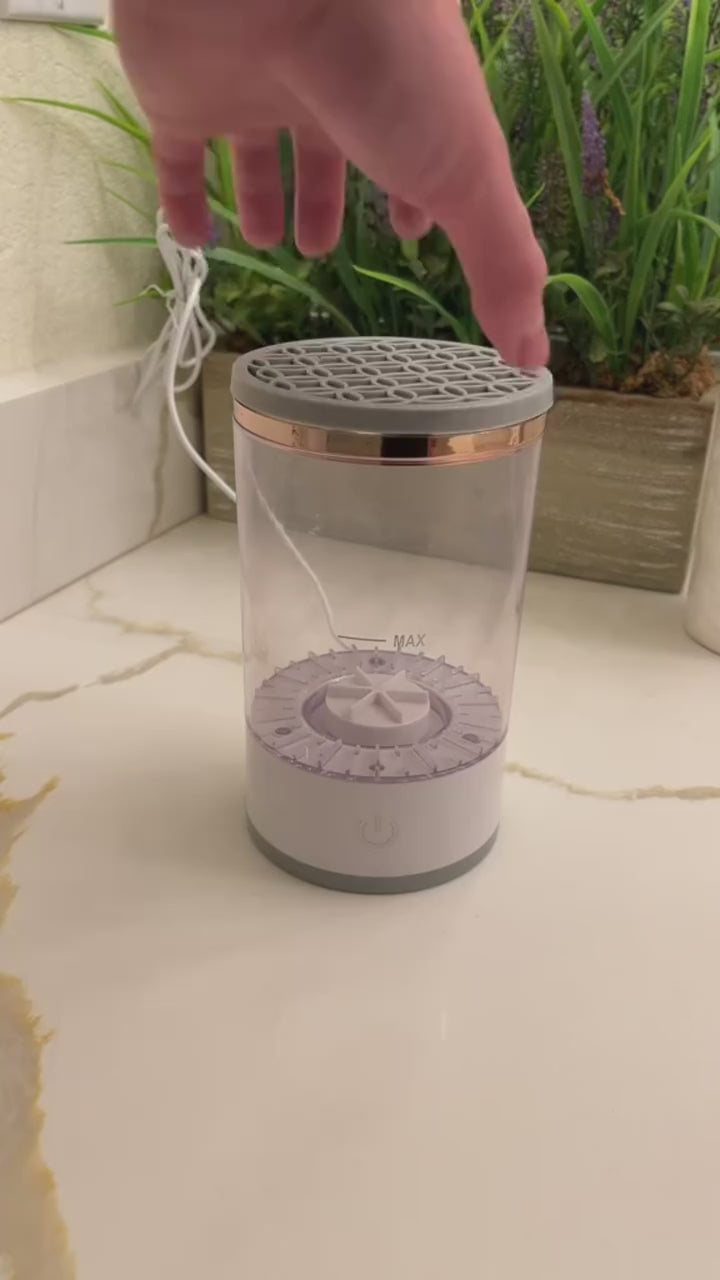 - the Portable Makeup Brush Cleaner is a total game-changer for all makeup lovers out there! This handy tool is like having your own personal makeup artist at your fingertips. No more hassle or mess when it comes to cleaning your beloved brushes – this portable cleaner makes the whole process a breeze. It's compact and easy to carry, making it the perfect sidekick for quick touch-ups and maintaining your go-to makeup brushes wherever you are. Thanks to its smart design and effective cleaning power, this brush cleaner ensures that your brushes remain in tip-top shape, allowing you to achieve flawless makeup looks every single time. Say goodbye to gunky brushes and hello to a fresh and flawless makeup application with the Portable Makeup Brush Cleaner by your side!