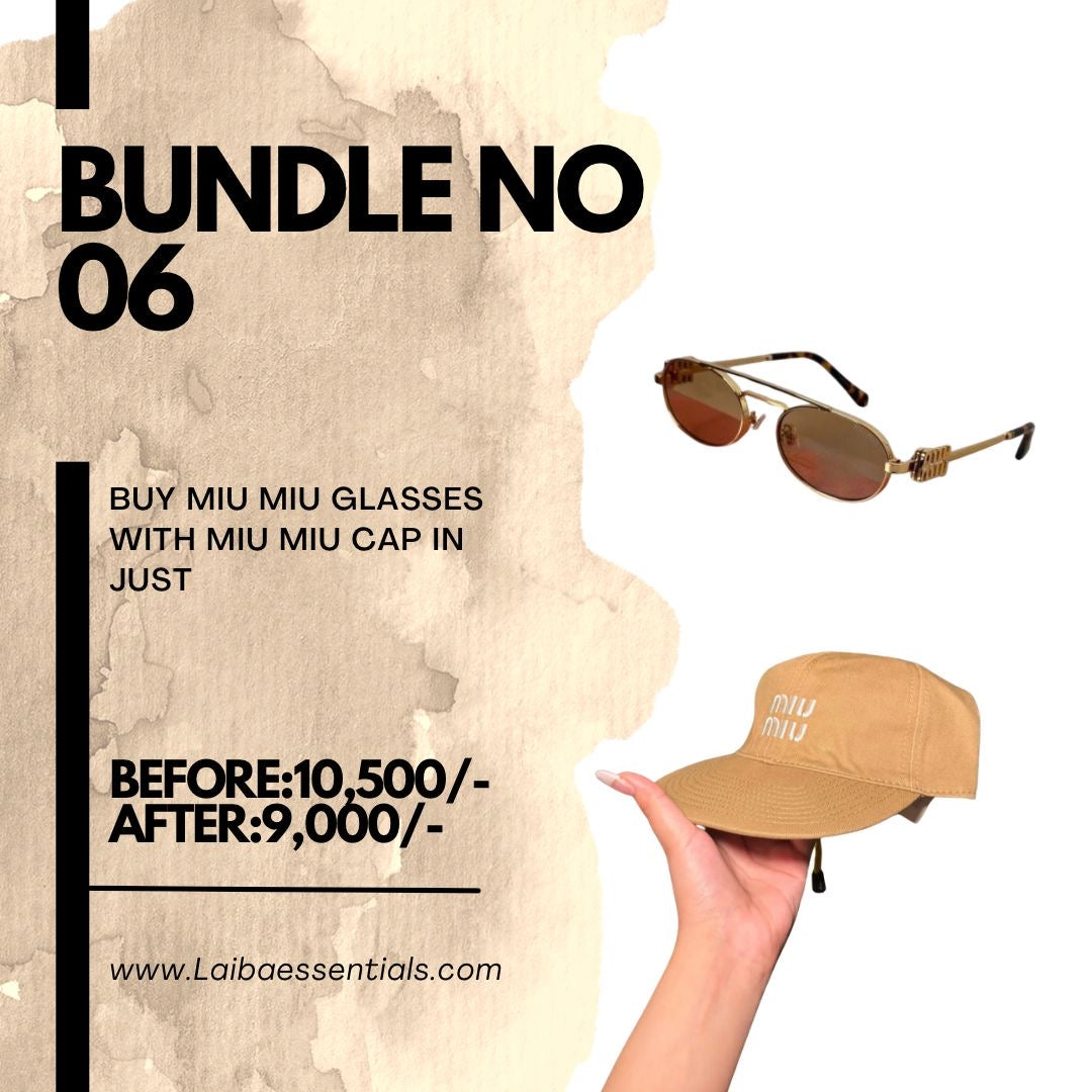 This exclusive offer includes stylish Miu Miu glasses paired with a trendy Miu Miu cap. The color of the cap will be random, giving you a unique accessory that complements your look perfectly. Don't miss this chance to elevate your style with this chic combination—perfect for any fashion lover!