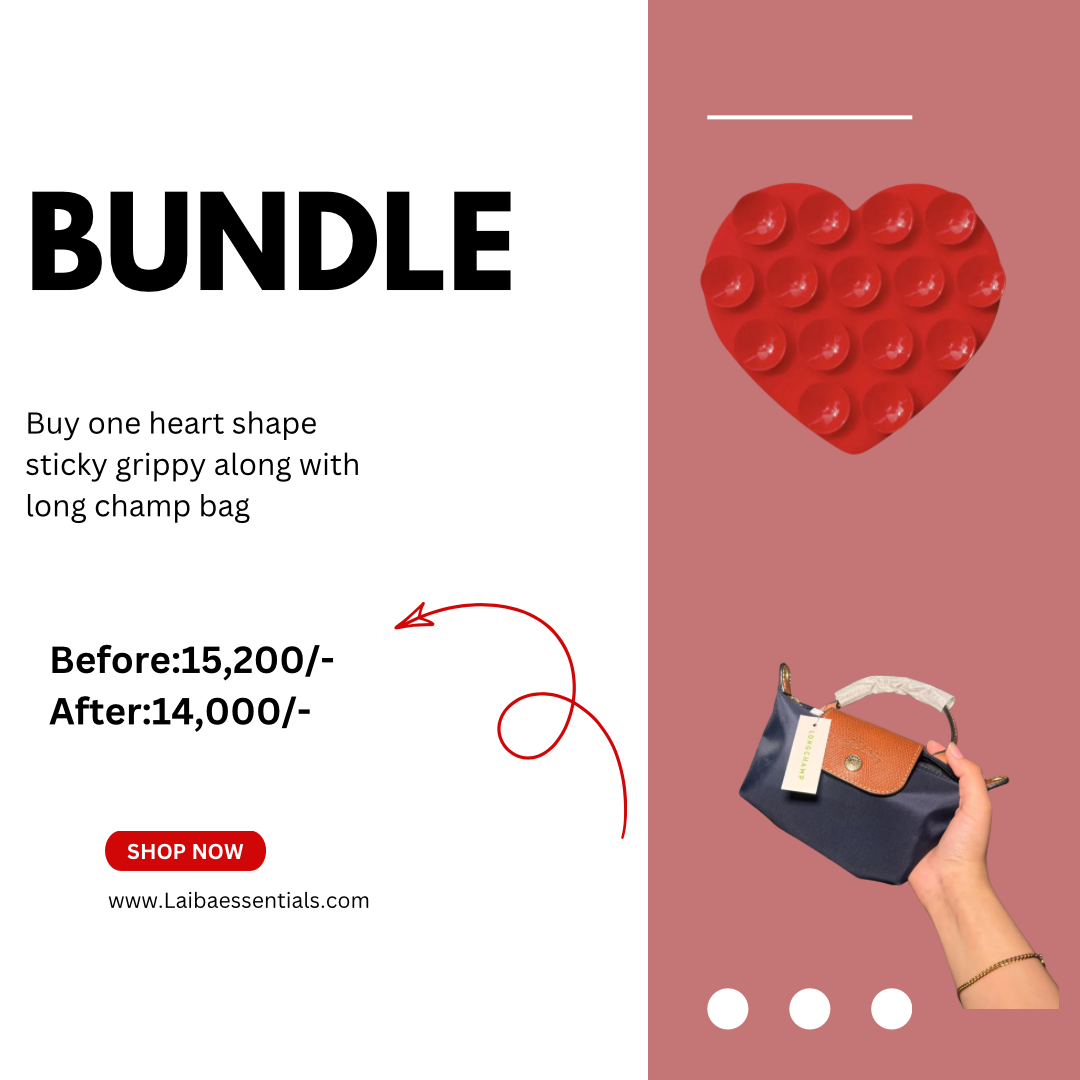 one heart shape sticky grippy along with long champ bag Bundle 14