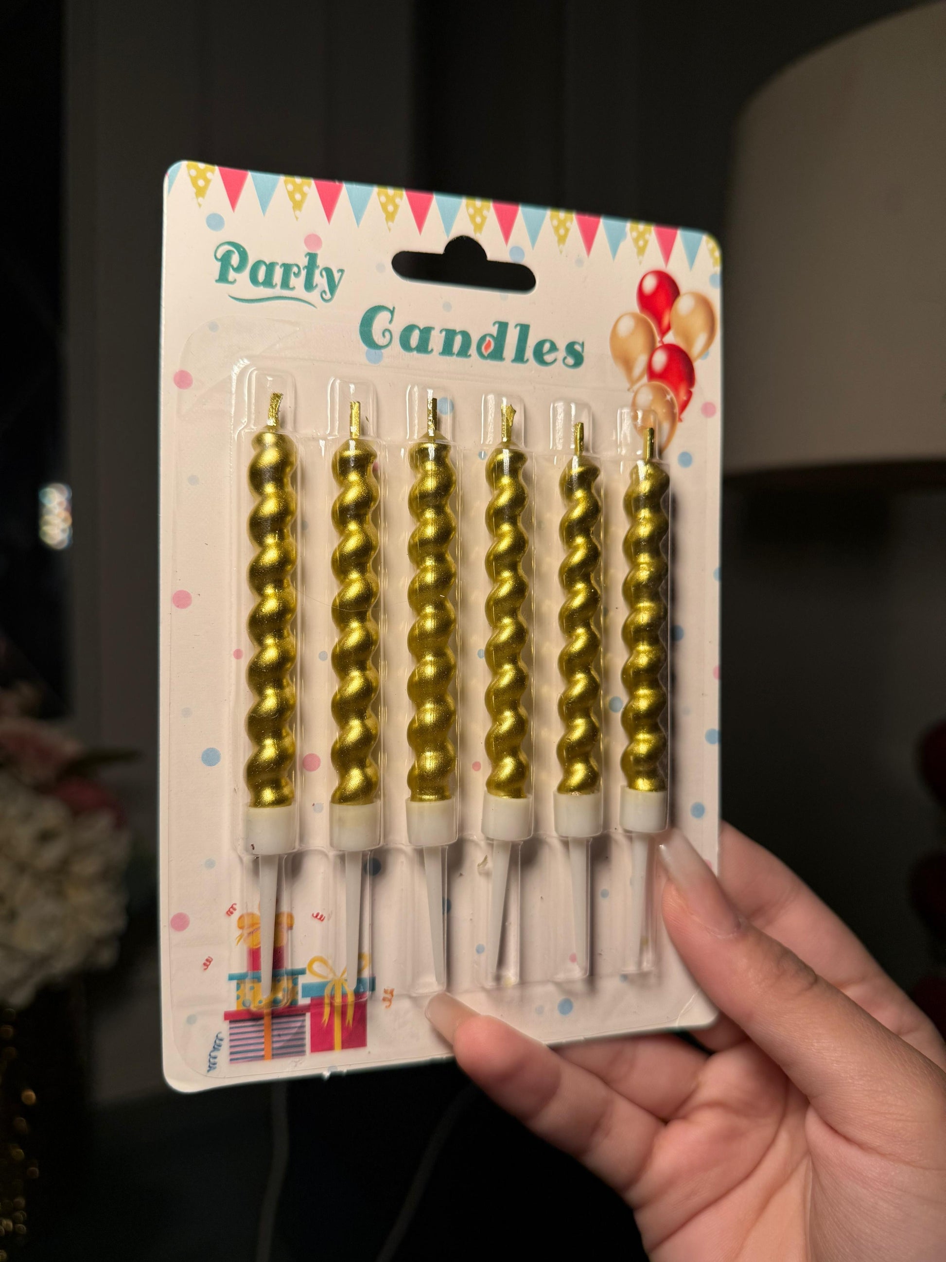The pack of 6 party golden candles is a fantastic choice for adding a touch of glamour and festivity to any celebration. These candles are designed with a shimmering golden color that exudes elegance and style, making them perfect for parties, gatherings, or special occasions.