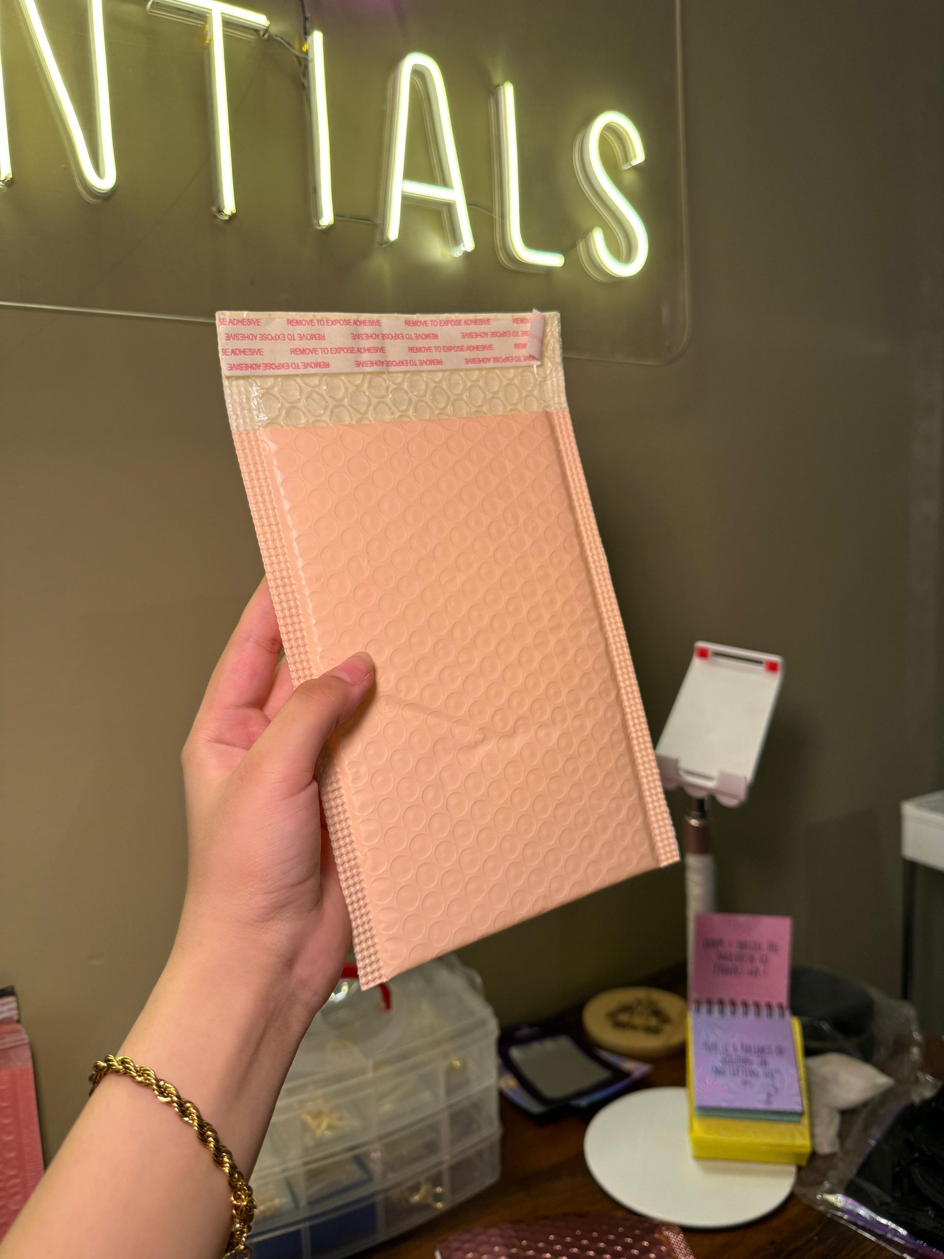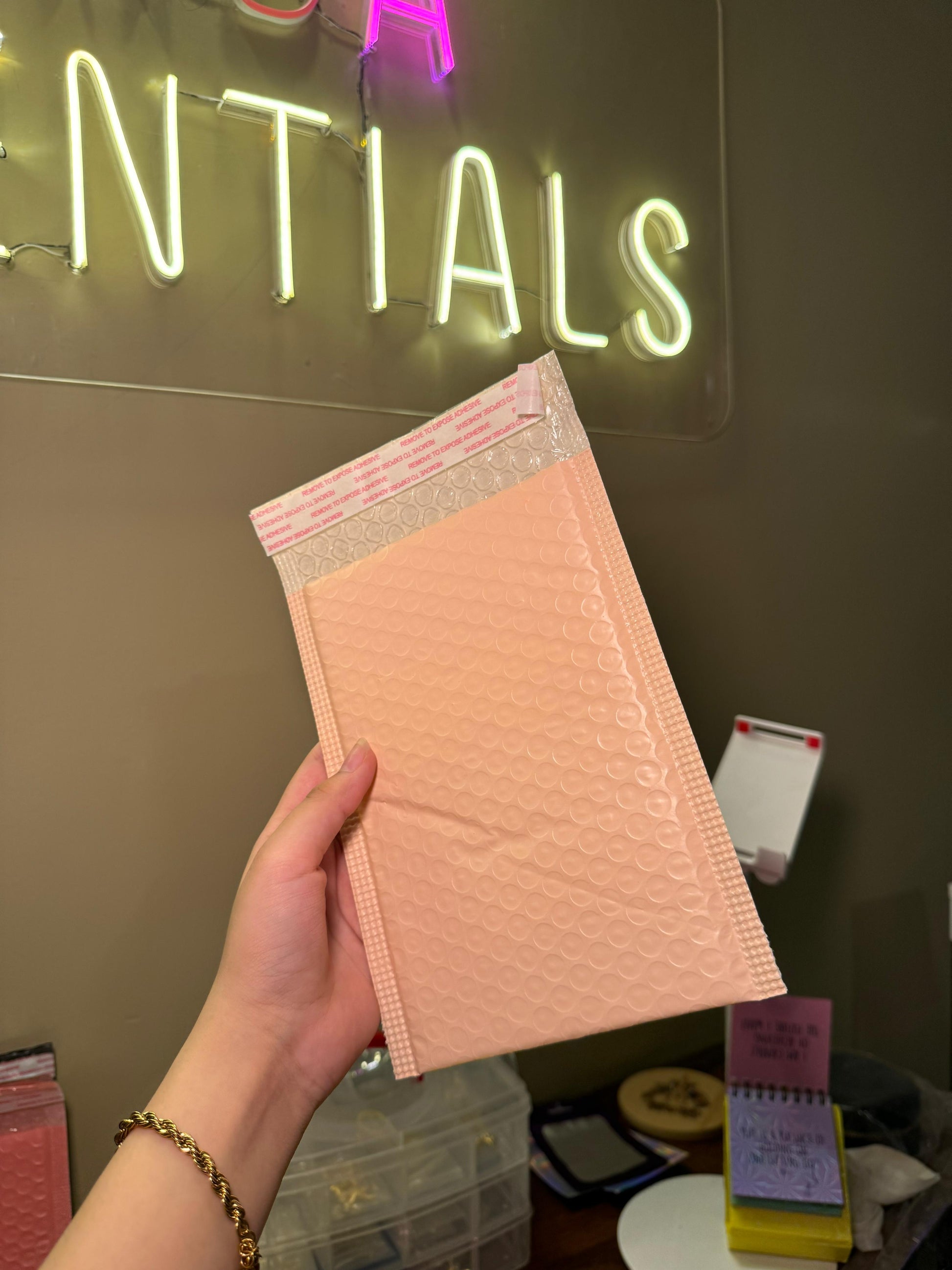 Introducing Pink bubble mailer 15*20cm On @Laibaessentials A Pink bubble mailer 15*20cm is a cute and protective envelope that comes in a pretty pink color with bubble wrap lining inside. It's sized at 15*20cm, which is perfect for mailing small items like letters, cards, or lightweight products. The bubble lining inside the mailer provides cushioning and protection to the contents, keeping them safe during shipping.It's a lovely choice for sending out your items in a safe and fashionable way.