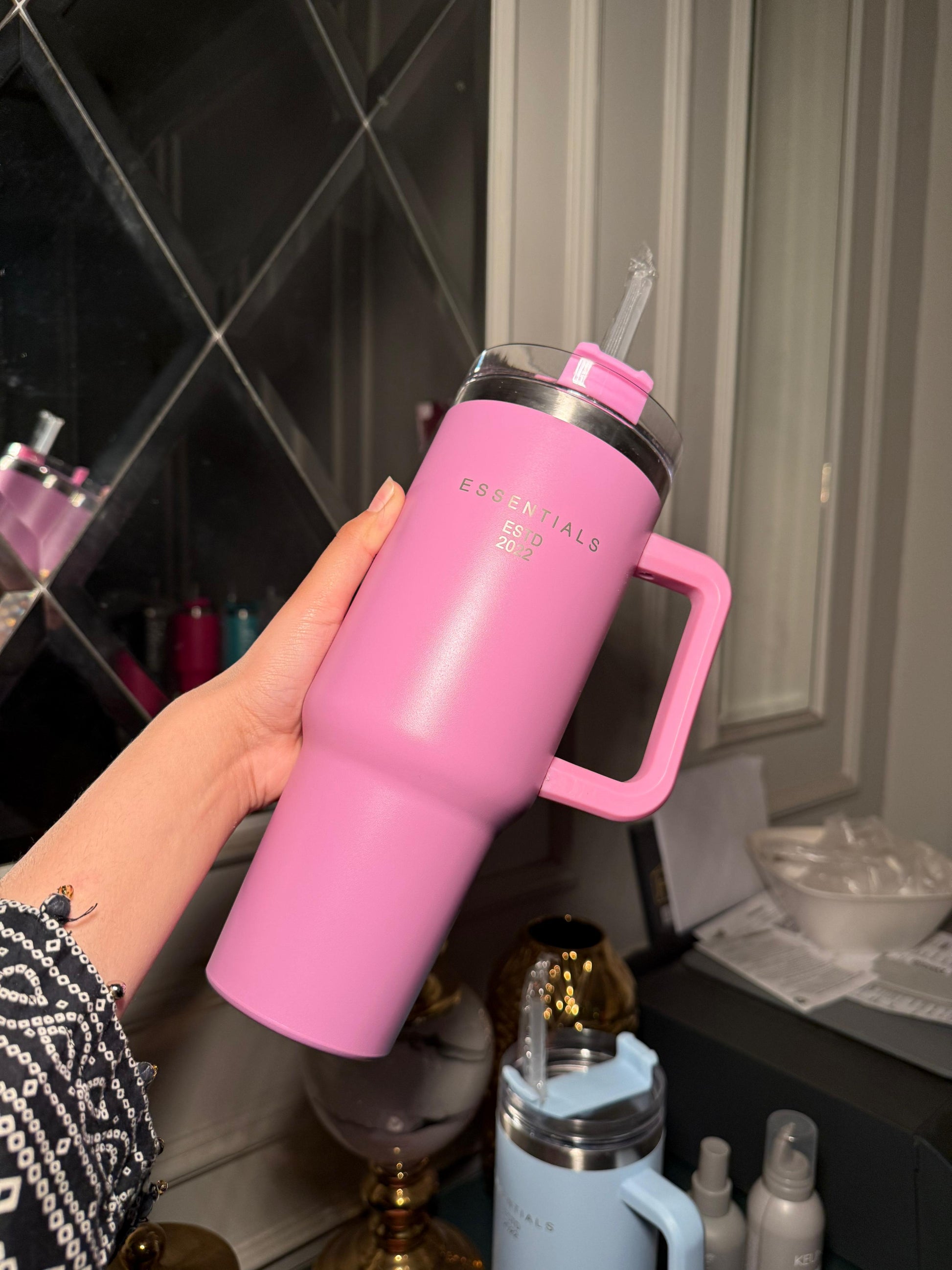 - A 40oz flask tumbler is like the ultimate drink buddy! This bad boy can hold a whopping 40 ounces of your favorite beverage, keeping it hot or cold for hours on end. Whether you're out camping, at a party, or just chilling at home, this flask tumbler has got your back. With its durable construction and sleek design, it's the perfect companion for staying hydrated or enjoying your drinks in style. So, grab your 40oz flask tumbler, fill it up, and sip away in convenience and flair!