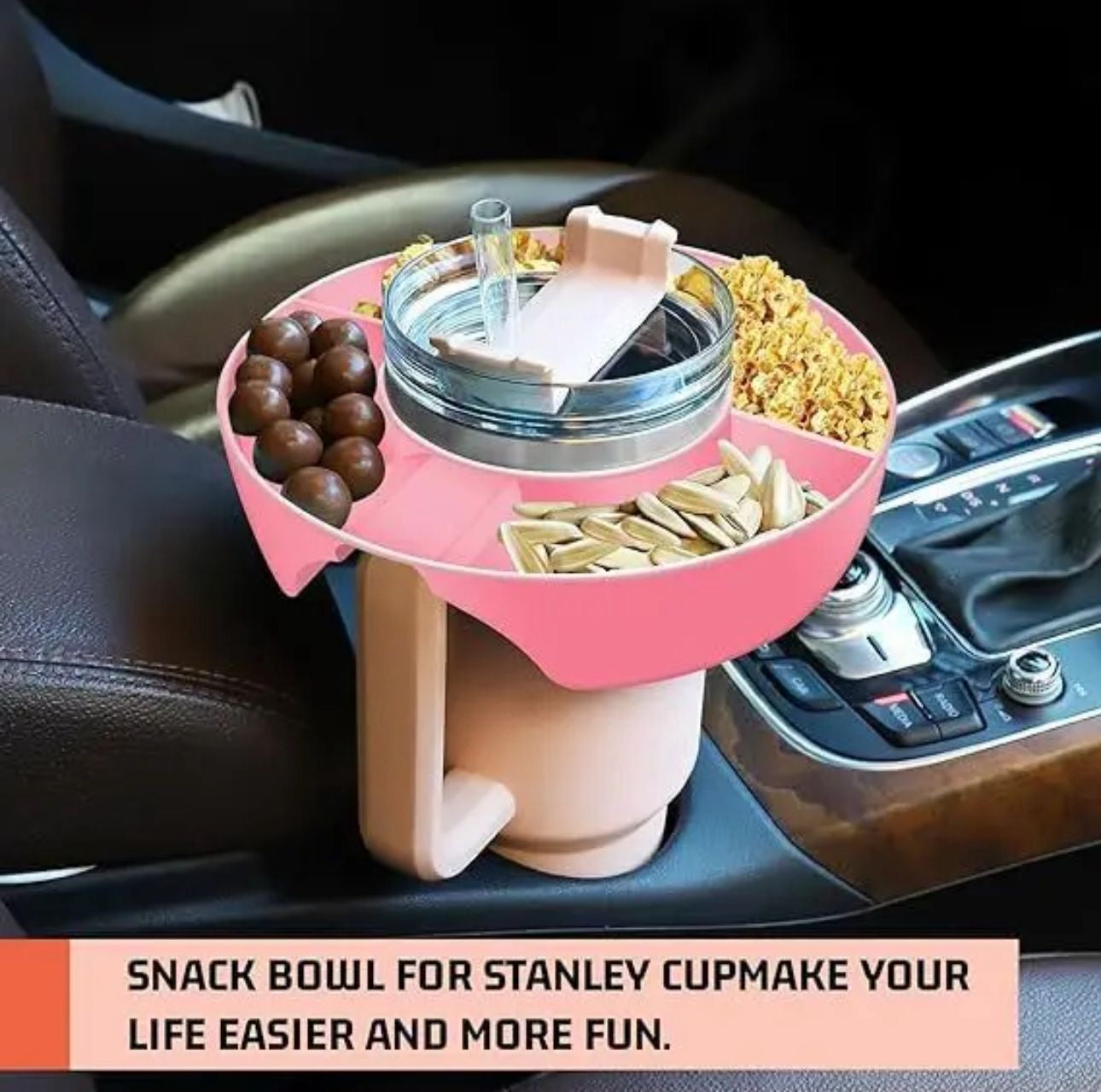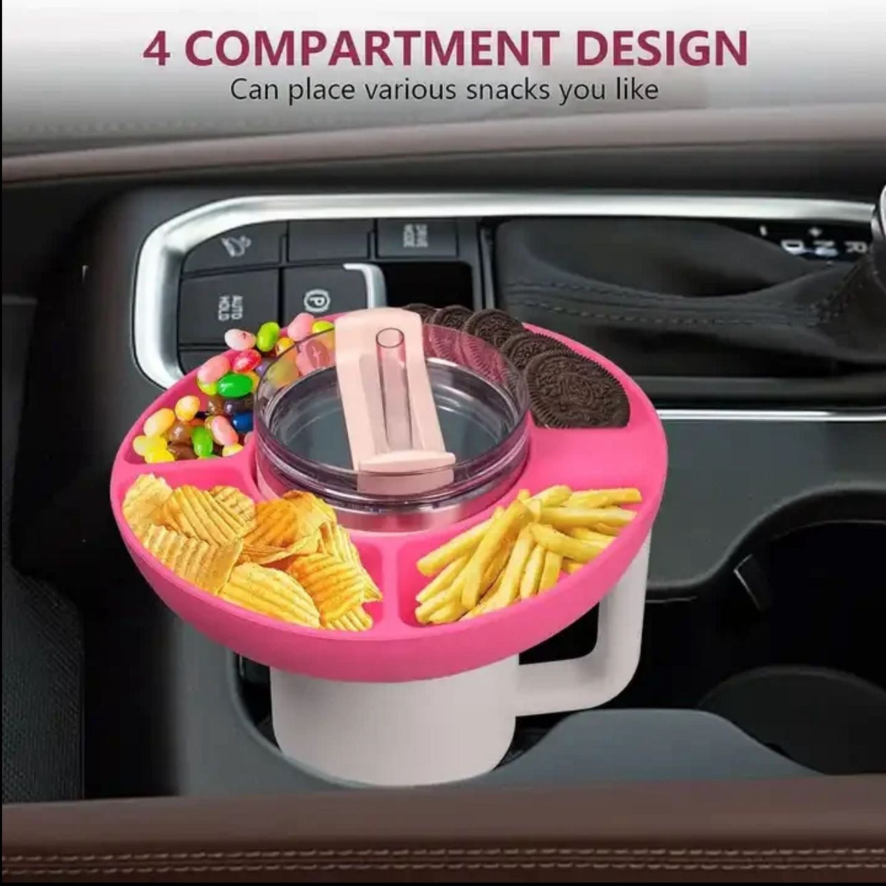 - Enhance your chilling experience with the Tumbler Snack Tray! Simply place it on your tumbler for convenient snacking while you Netflix and chill. The tray, available in white and pink, adds a touch of style to your relaxation time. Enjoy your favorite snacks hassle-free with this must-have accessory for cozy evenings!"