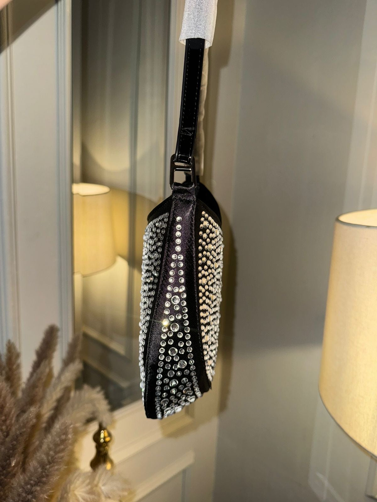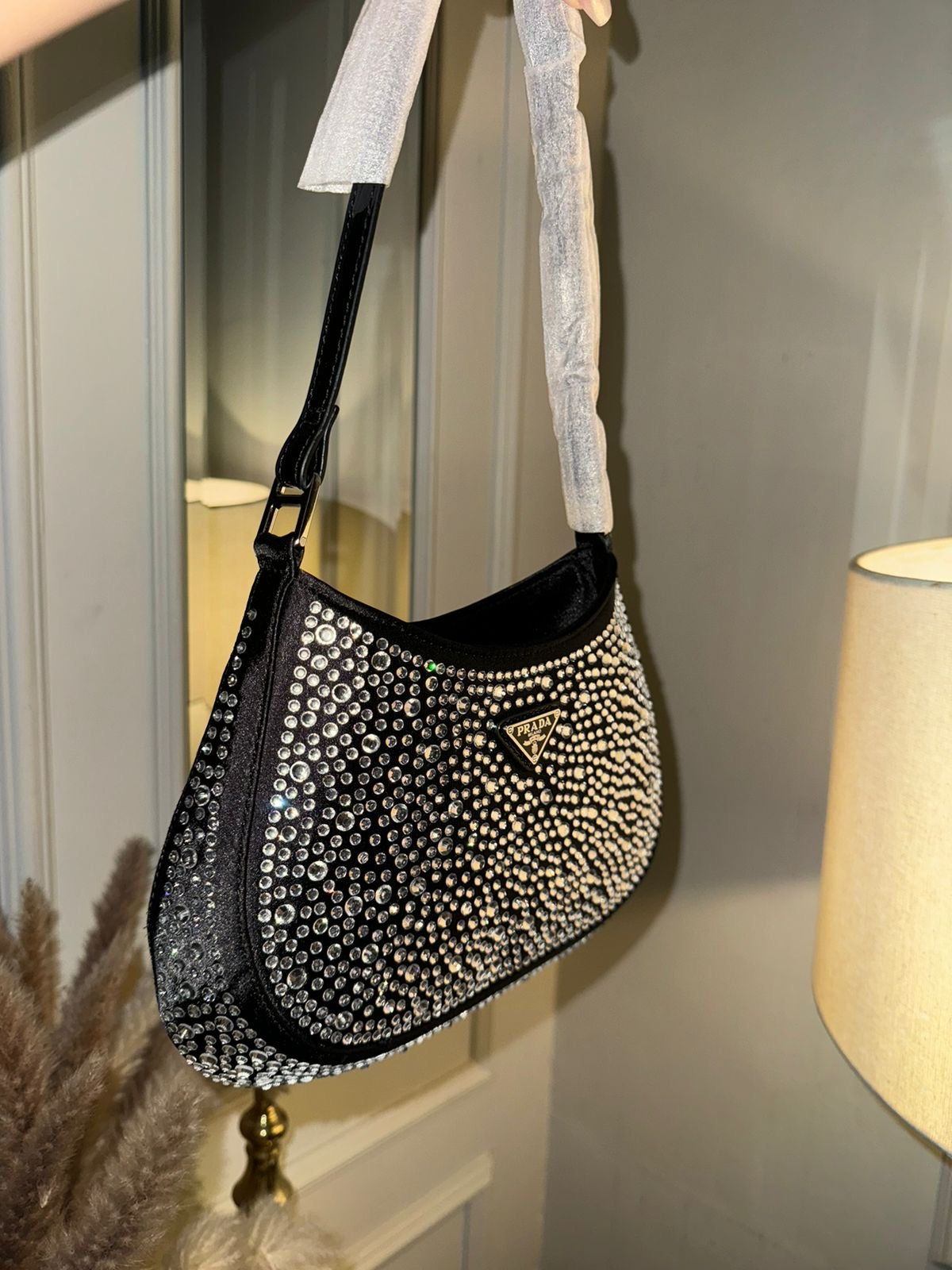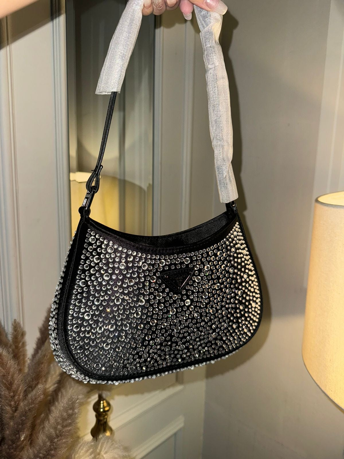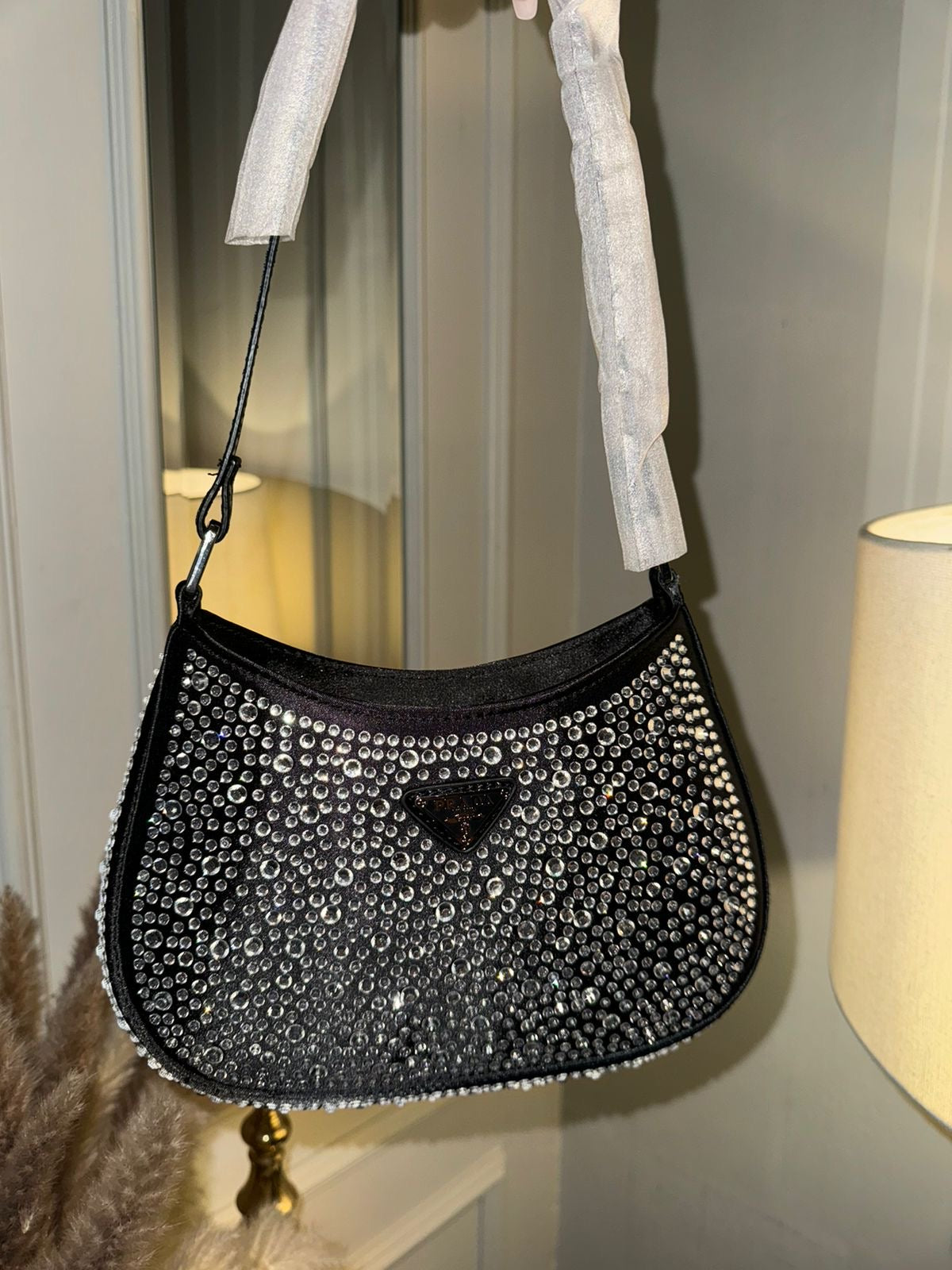 Introducing Prada rhinestone shoulder bag On @Laiba essential Comes in two colours pink and black a Prada rhinestone shoulder bag. Prada is a luxury brand known for its elegant and high-quality products, so a rhinestone shoulder bag from them would likely be a glamorous and eye-catching piece. Rhinestones can add a touch of sparkle and sophistication to any accessory.