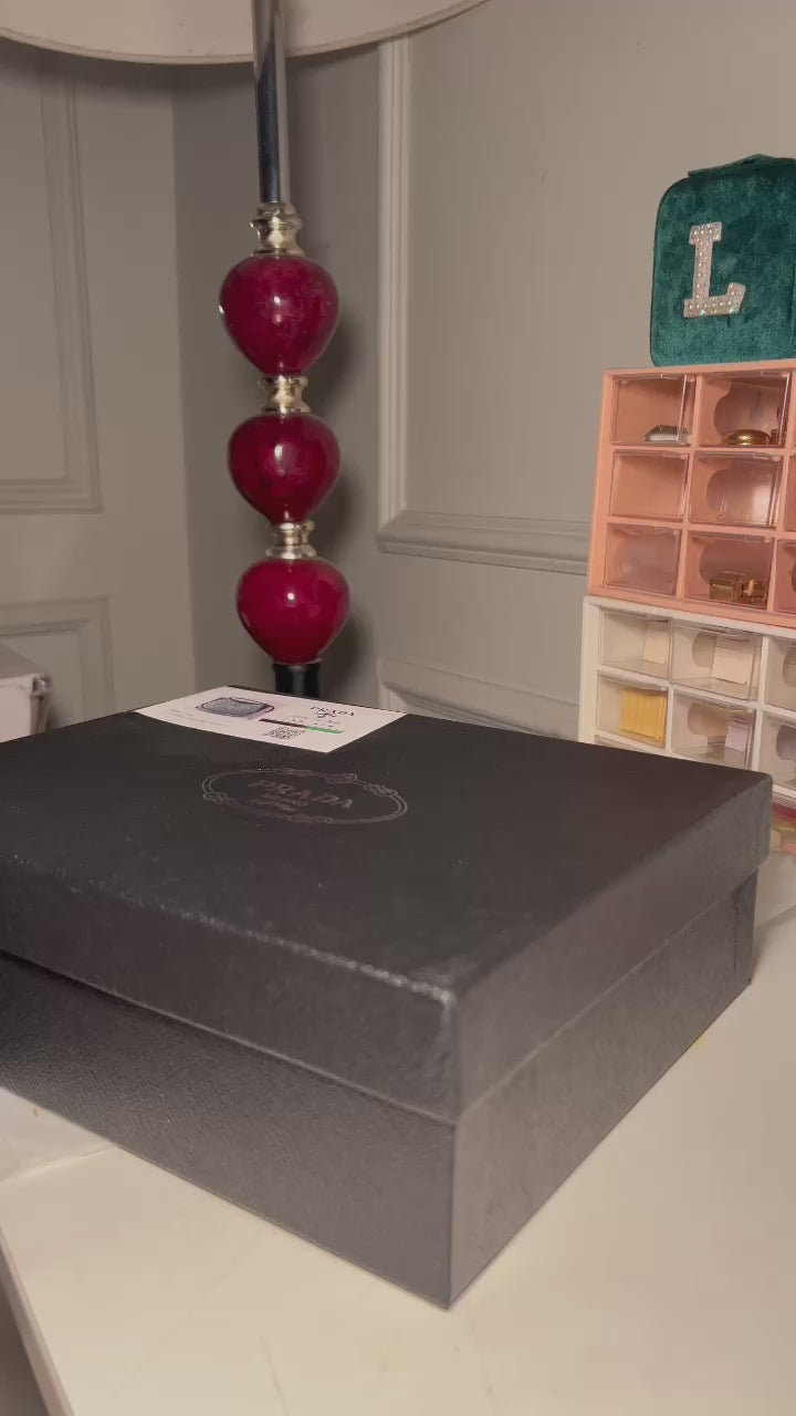 - This stunning bag is all about glamour and sparkle. It features a sleek and compact design adorned with dazzling rhinestones, adding a touch of glitz and glam to any outfit. The shoulder strap is adjustable, allowing you to wear it comfortably on your shoulder or across your body. The Prada Rhinestone Shoulder Bag is perfect for those special occasions when you want to make a statement and shine bright like a diamond. Get ready to turn heads and steal the spotlight with this gorgeous bag! ✨💃🏻👜
