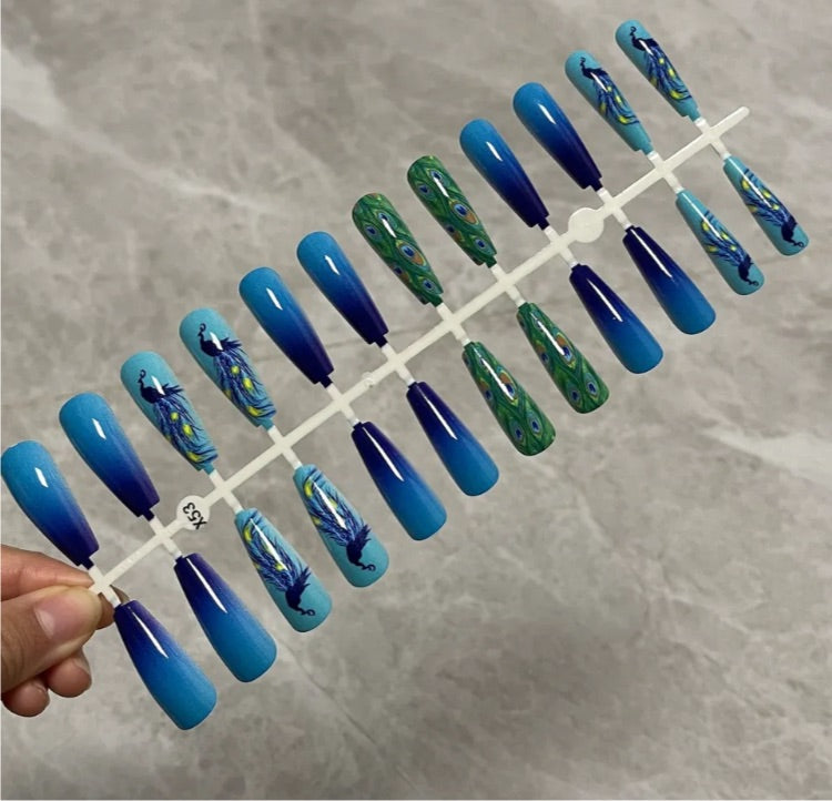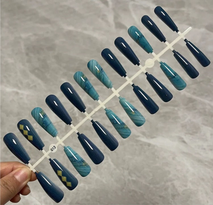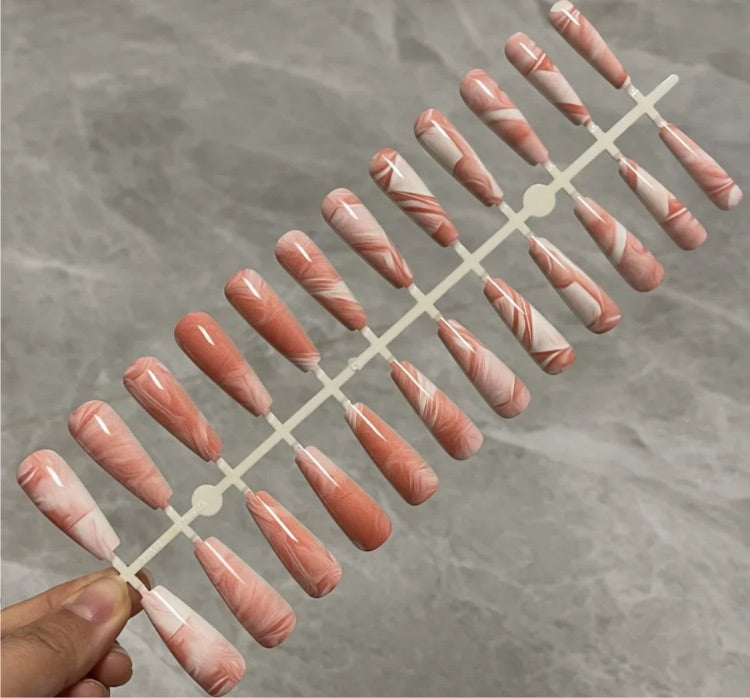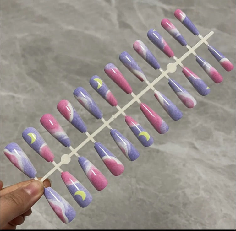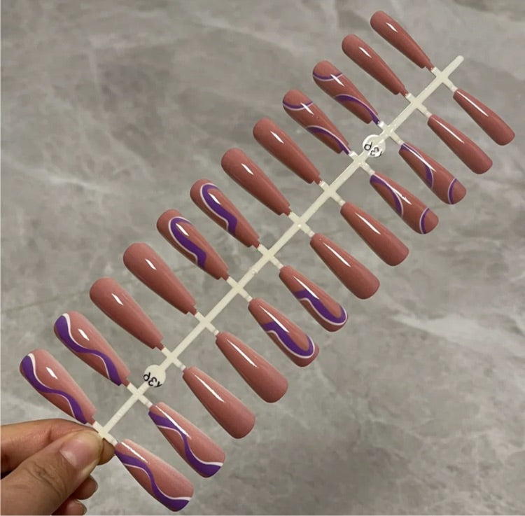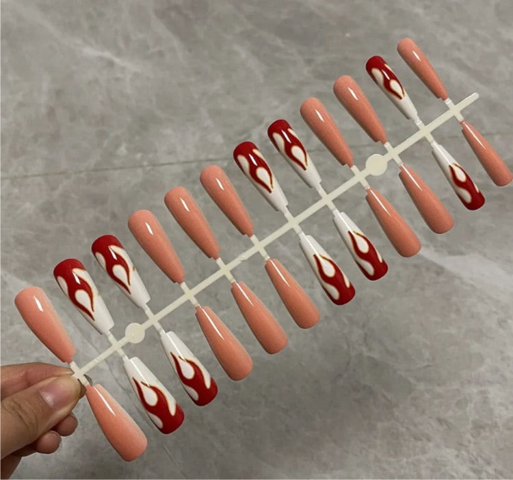 Printed Long Coffin Press On Nails