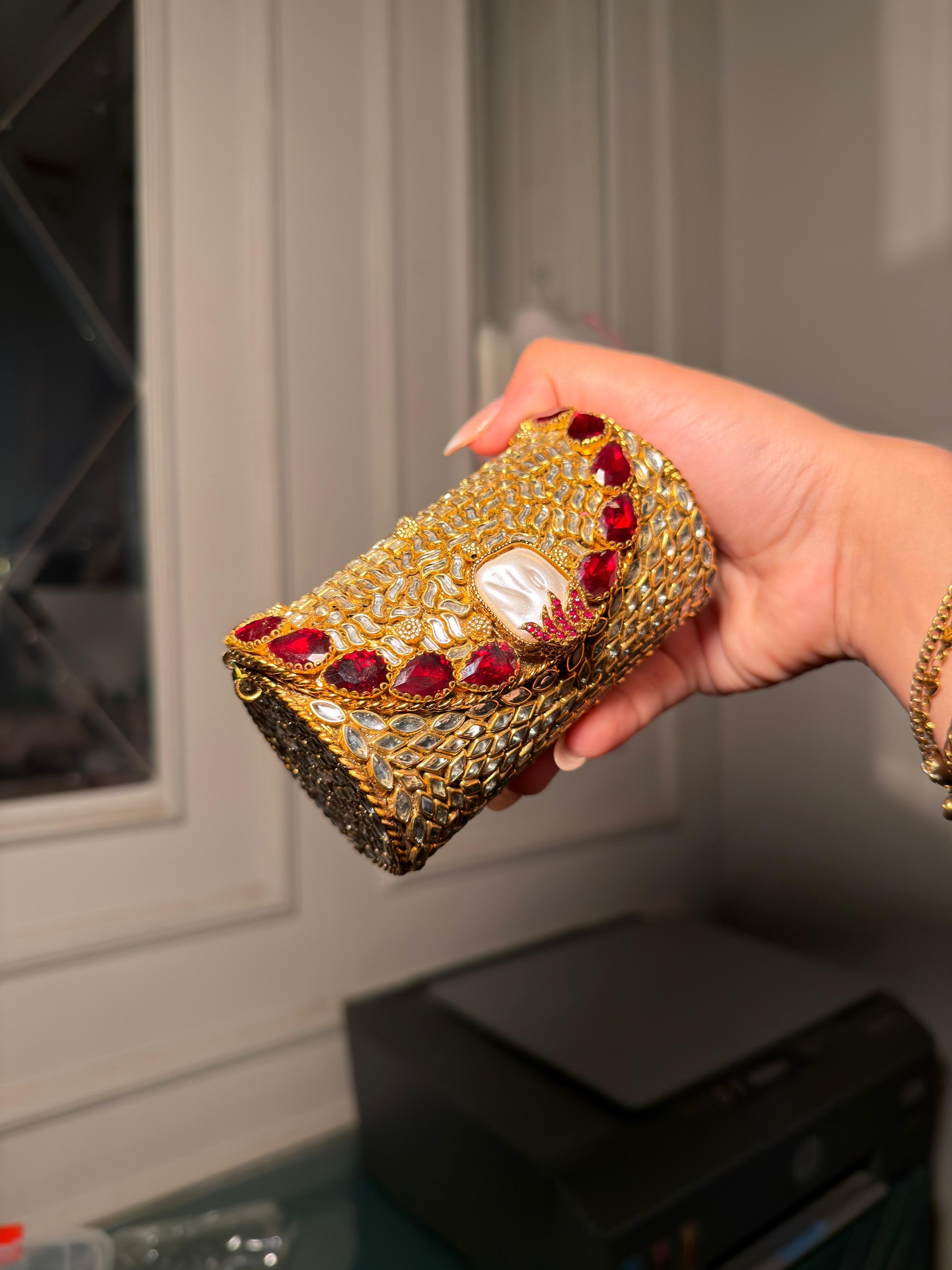 Ruby Royale Kundan Clutch