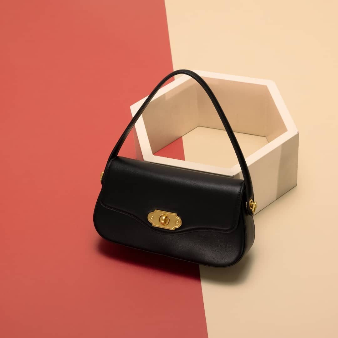 - This handbag is the epitome of style and elegance! With its sleek design and high-quality craftsmanship, it's a true fashion statement. The rich black colour and exquisite gold button detailing make it a perfect accessory for any occasion. The spacious interior provides ample room for all your essentials, while the sturdy handles ensure comfortable carrying. Whether you're heading to a party or a business meeting, this bag will elevate your look and turn heads wherever you go. Don't miss out on this fabulous piece 🫶🏻