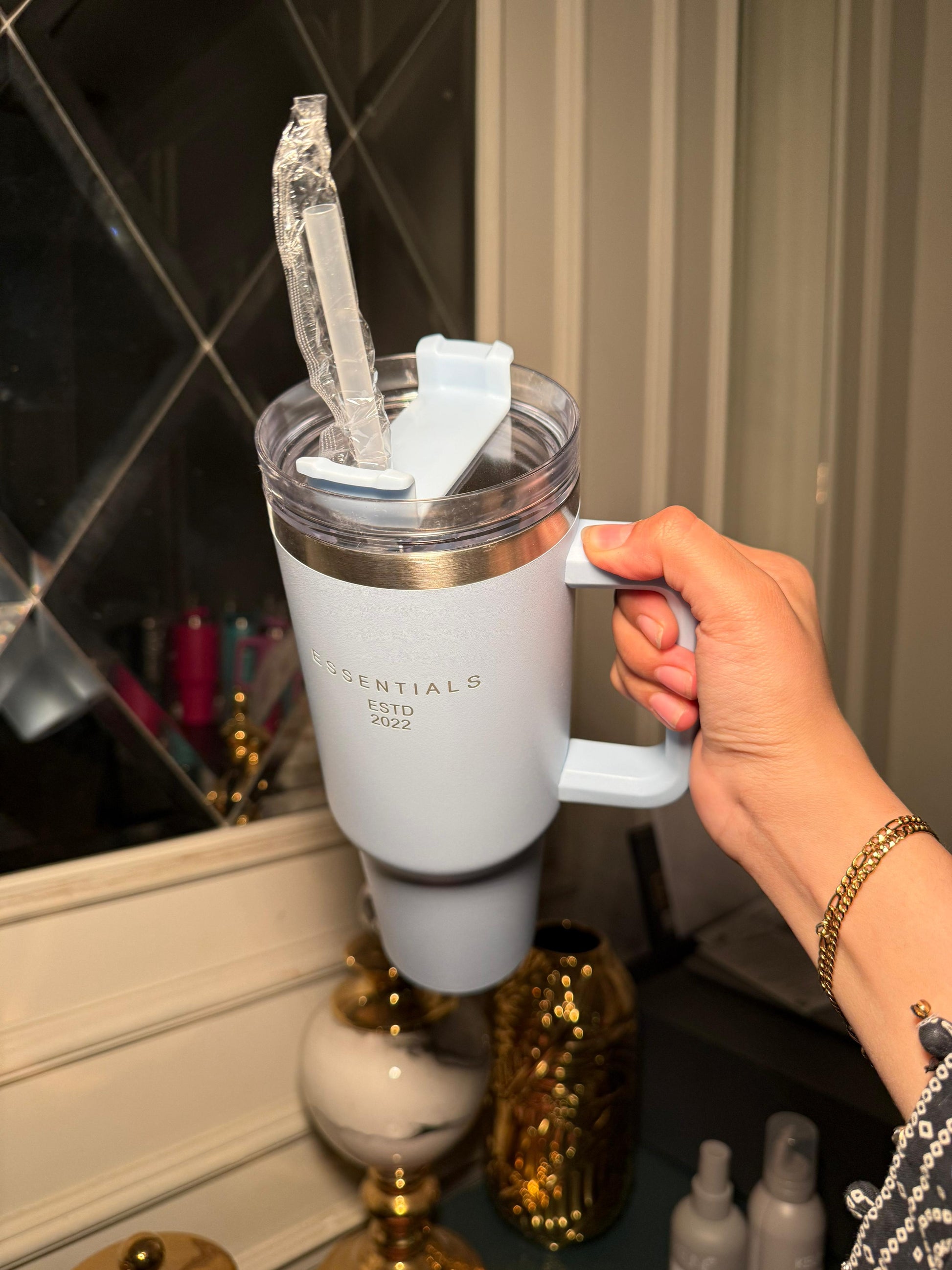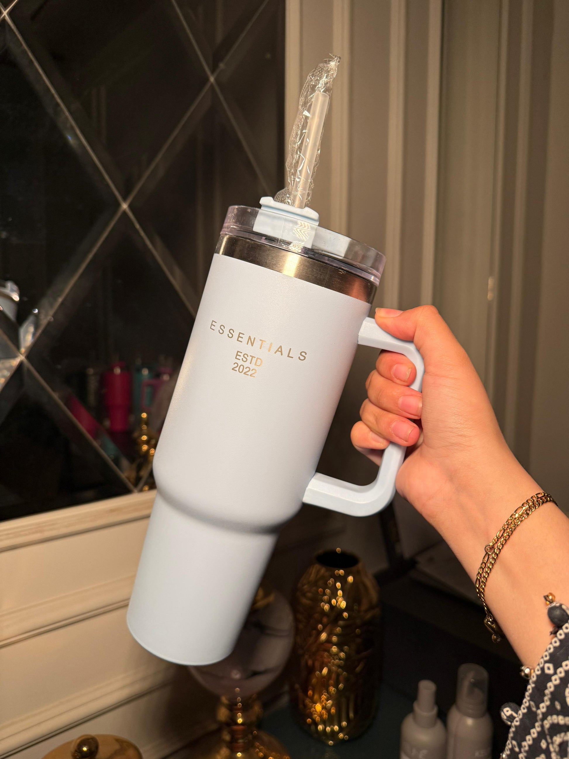 - A 40oz flask tumbler is like the ultimate drink buddy! This bad boy can hold a whopping 40 ounces of your favorite beverage, keeping it hot or cold for hours on end. Whether you're out camping, at a party, or just chilling at home, this flask tumbler has got your back. With its durable construction and sleek design, it's the perfect companion for staying hydrated or enjoying your drinks in style. So, grab your 40oz flask tumbler, fill it up, and sip away in convenience and flair!