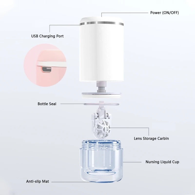 - you just have tu put your lenses in the container and your lenses solution add press the botton at the top of the device and it will clean your lenses..