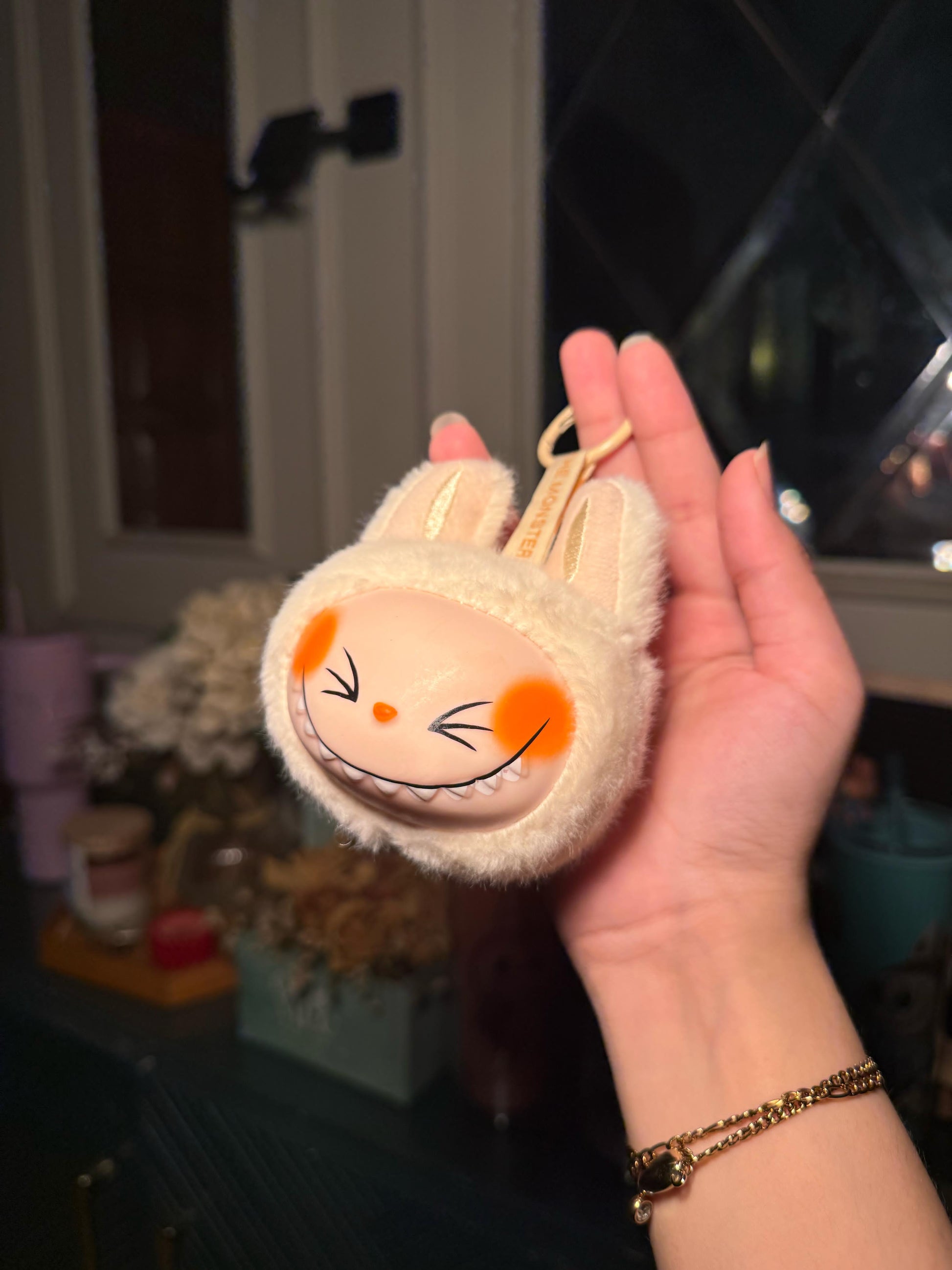 White Teethe Labubu keychain charm