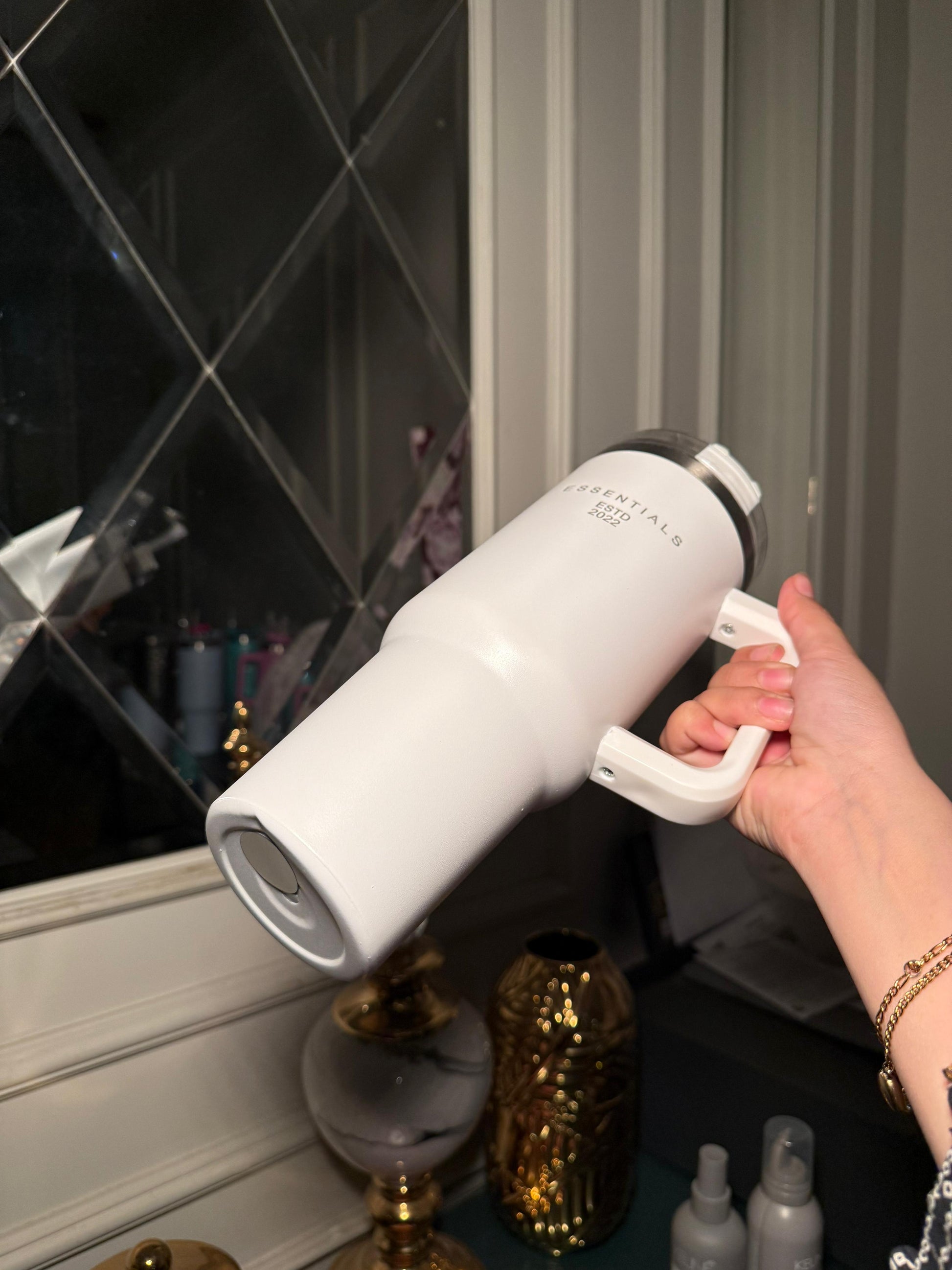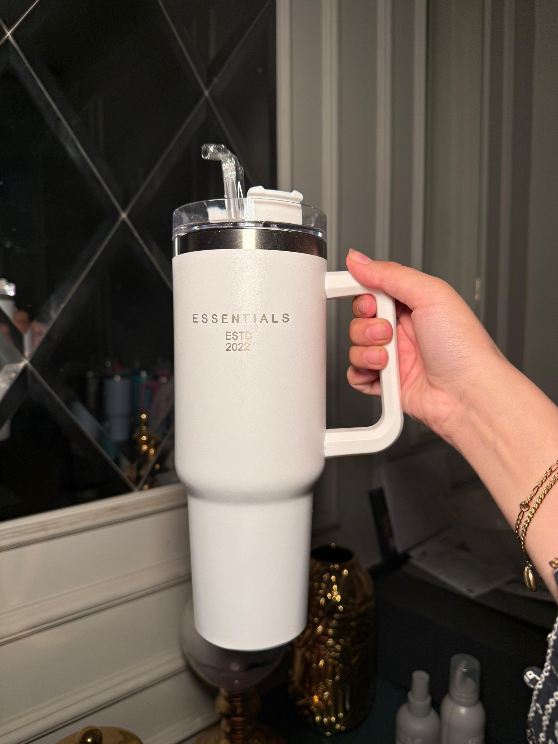 - A 40oz flask tumbler is like the ultimate drink buddy! This bad boy can hold a whopping 40 ounces of your favorite beverage, keeping it hot or cold for hours on end. Whether you're out camping, at a party, or just chilling at home, this flask tumbler has got your back. With its durable construction and sleek design, it's the perfect companion for staying hydrated or enjoying your drinks in style. So, grab your 40oz flask tumbler, fill it up, and sip away in convenience and flair!